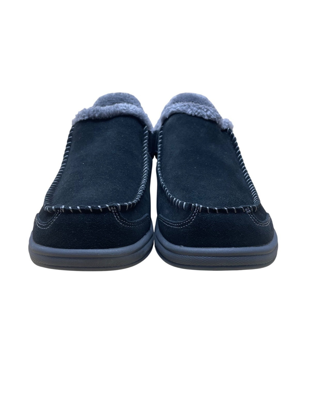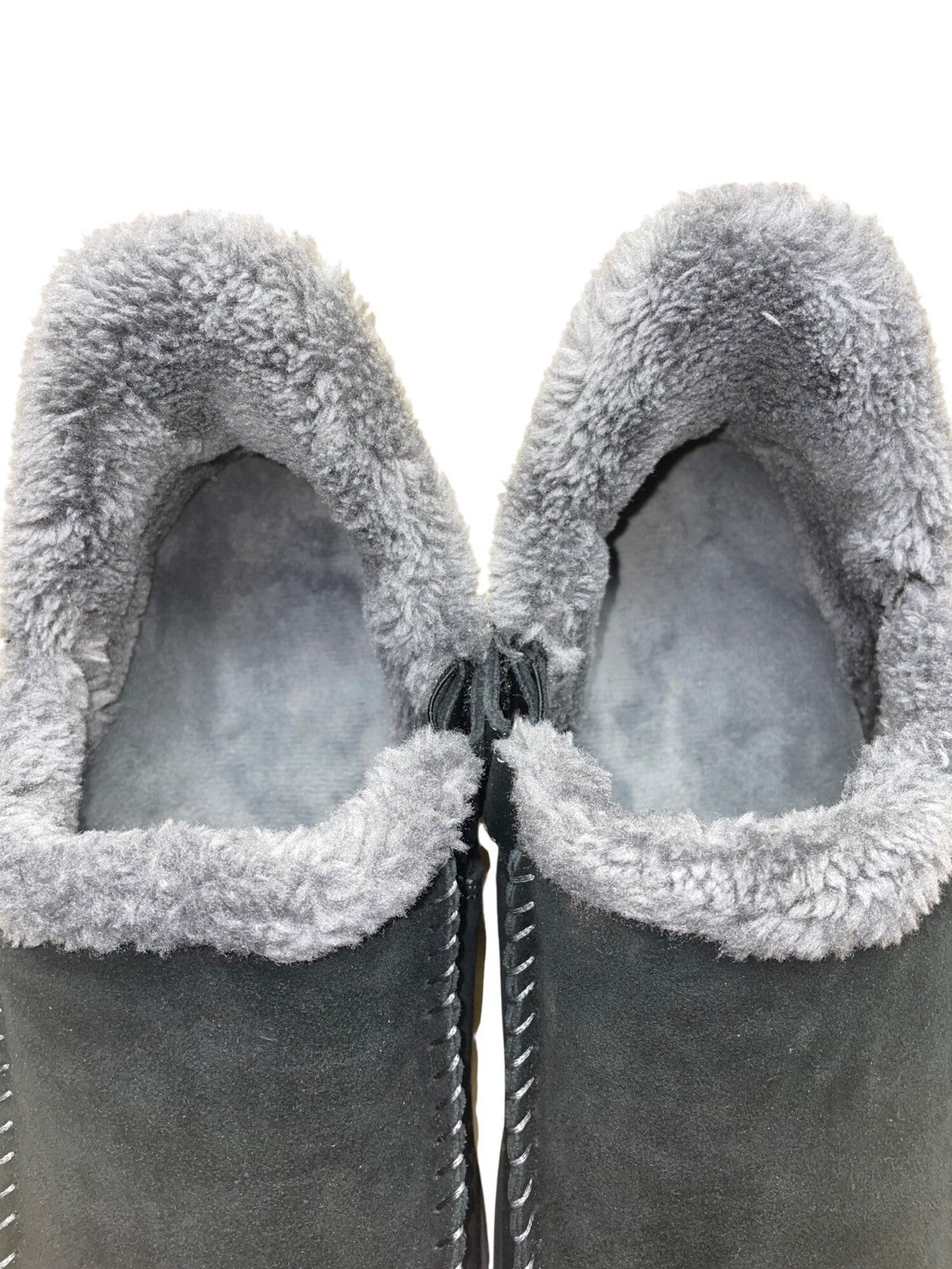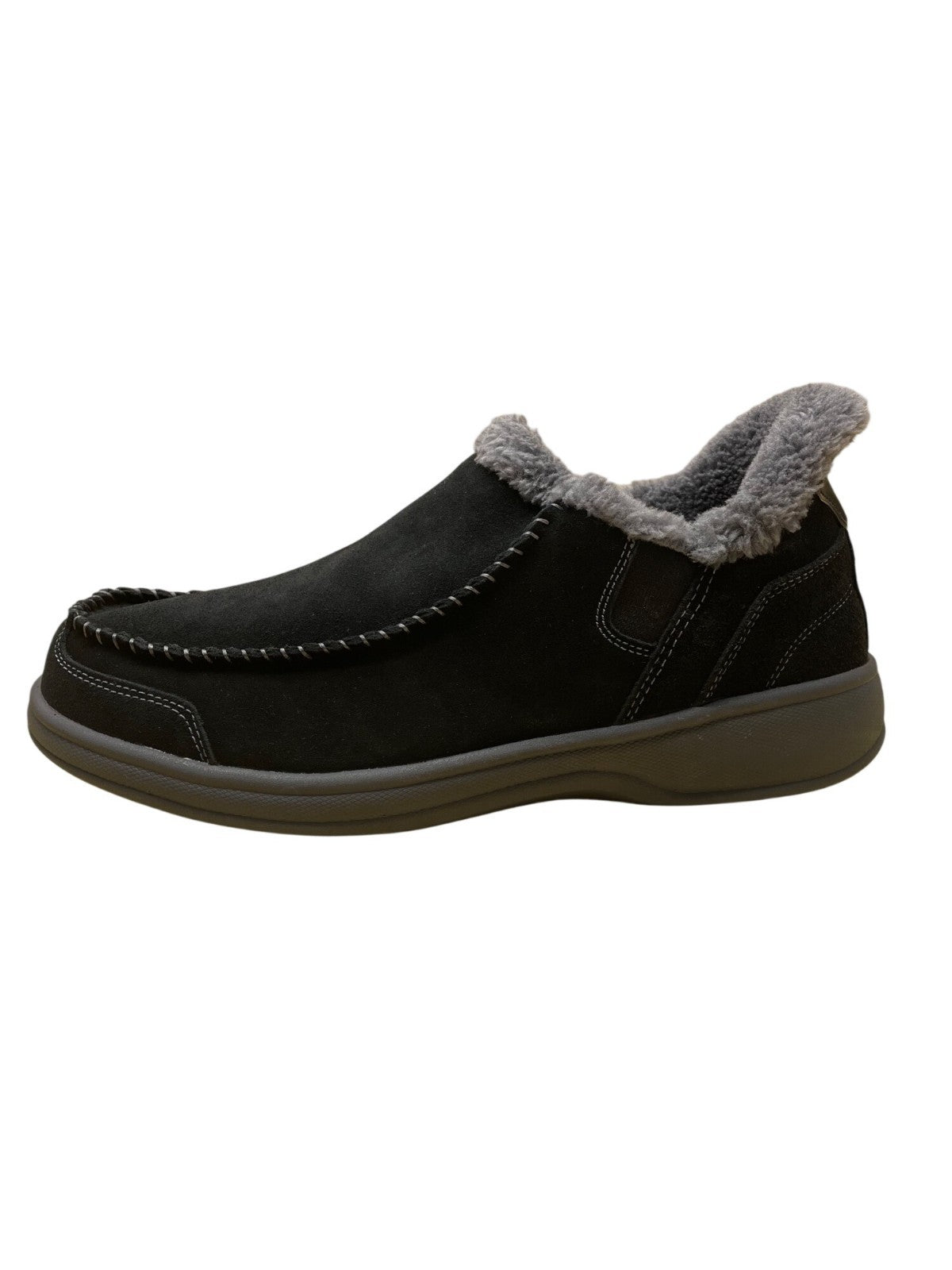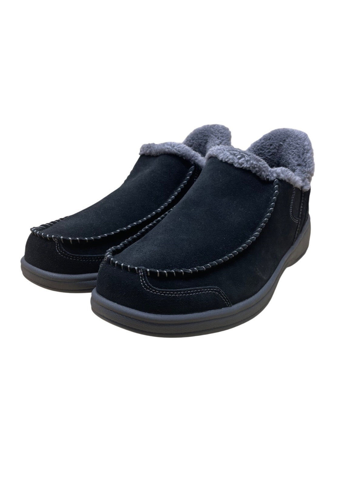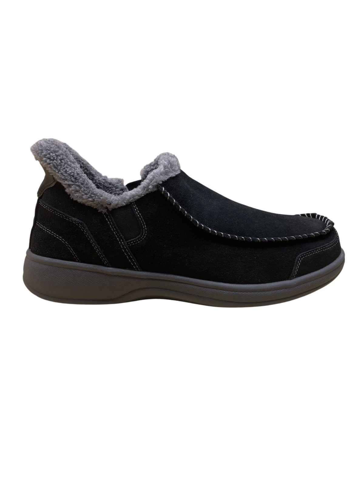 Orthofeet Men’s Black Leather With Faux Fur Lining Slip-On Slippers Size 12 Wide