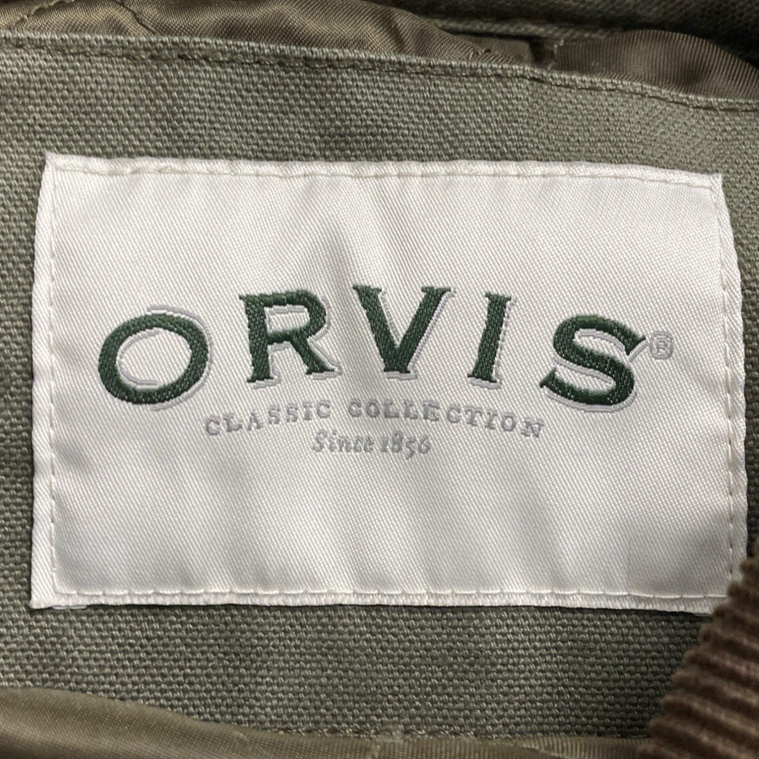 Orvis Men's Olive Green Quilted Field Jacket Corduroy Collar Size XXL