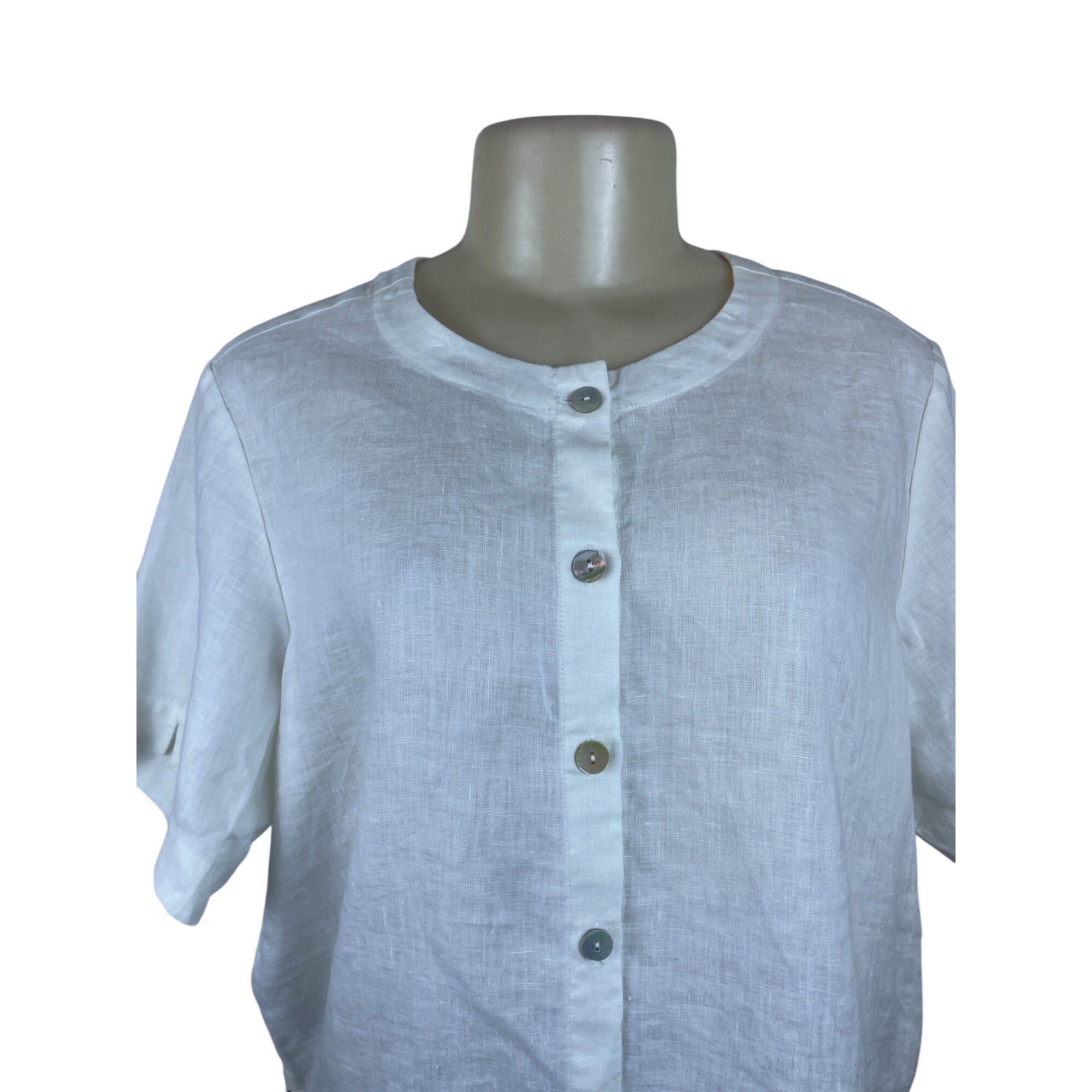 Orvis Women's White Linen Button Up Short Sleeve Blouse Size M