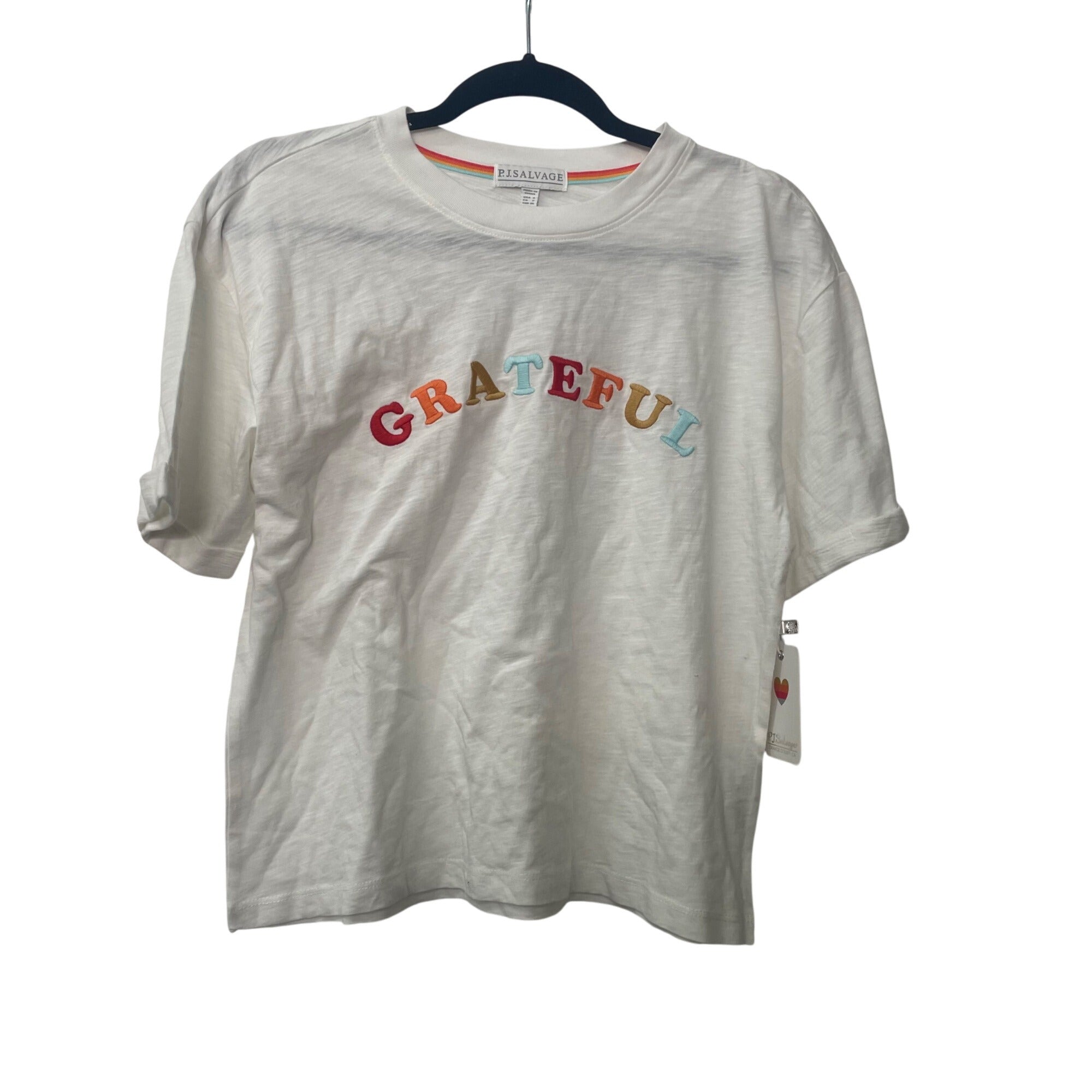 P.J. Salvage Womens White Cotton Grateful Graphic Tee Crew Neck Short Sleeve Size S