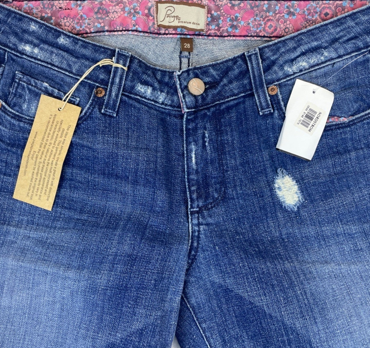 Paige Premium Denim Womens Blue Distressed Skinny Jeans Size 28 - New