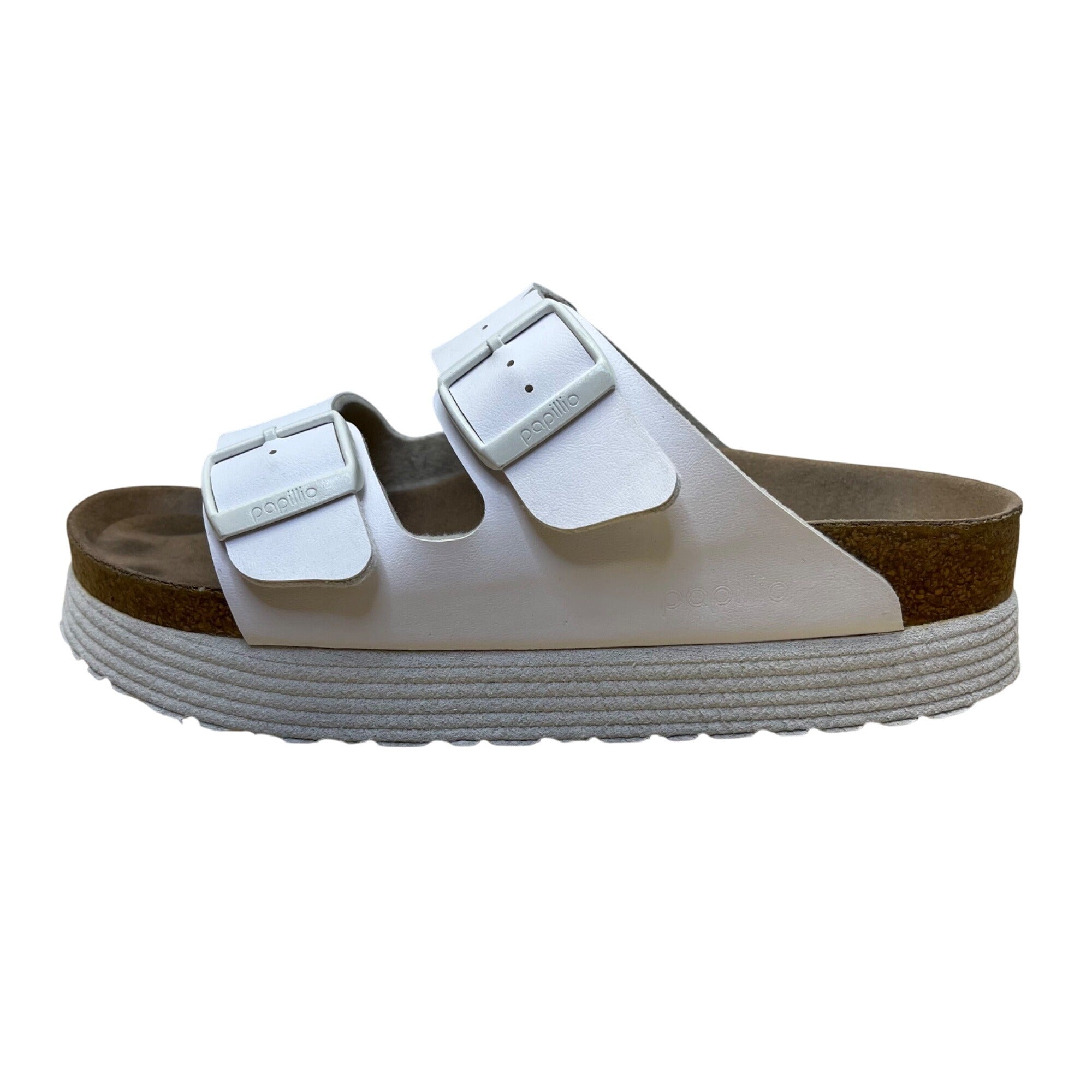 Papillio Women’s White Strap Adjustable Buckle Cork Platform Sandals Size 7.5