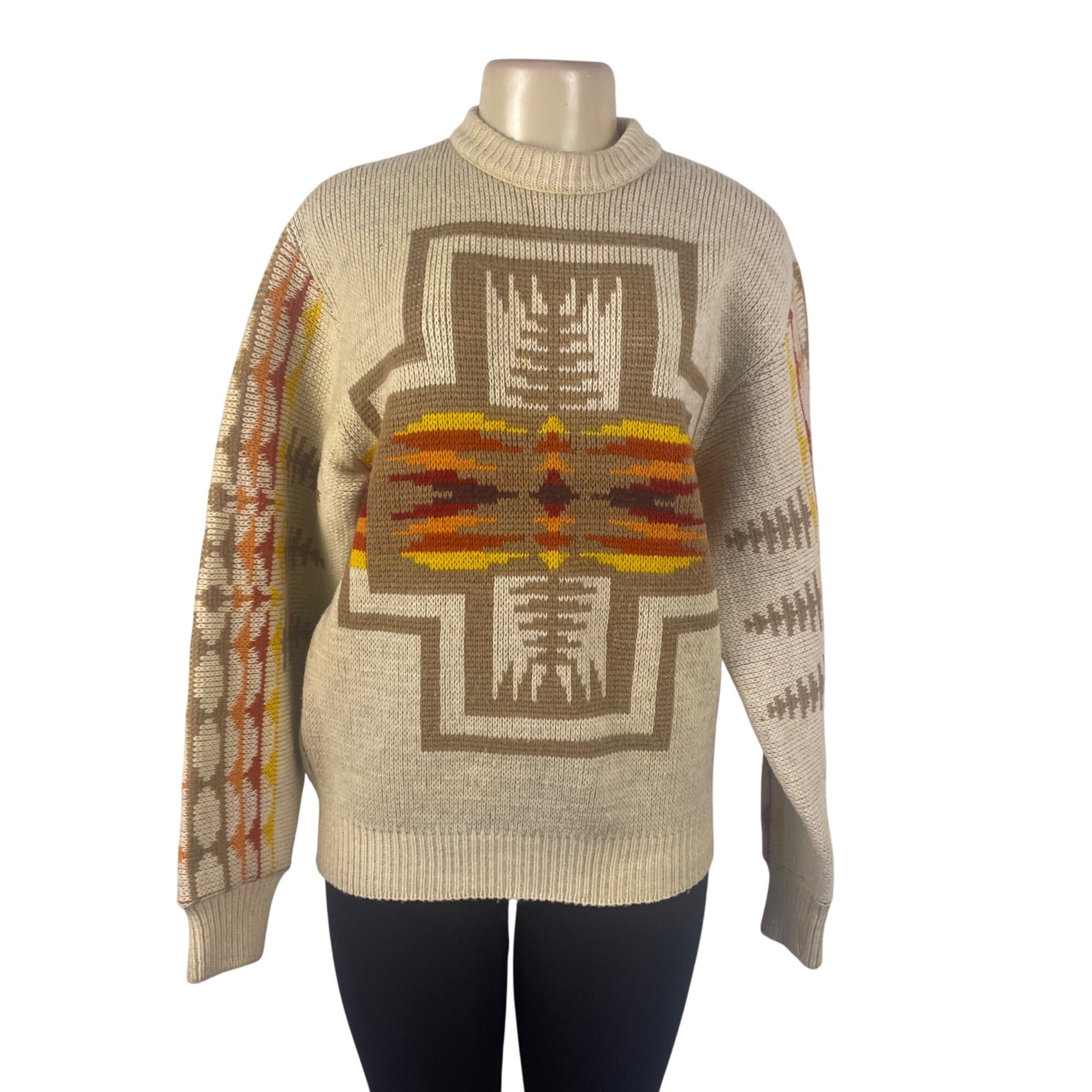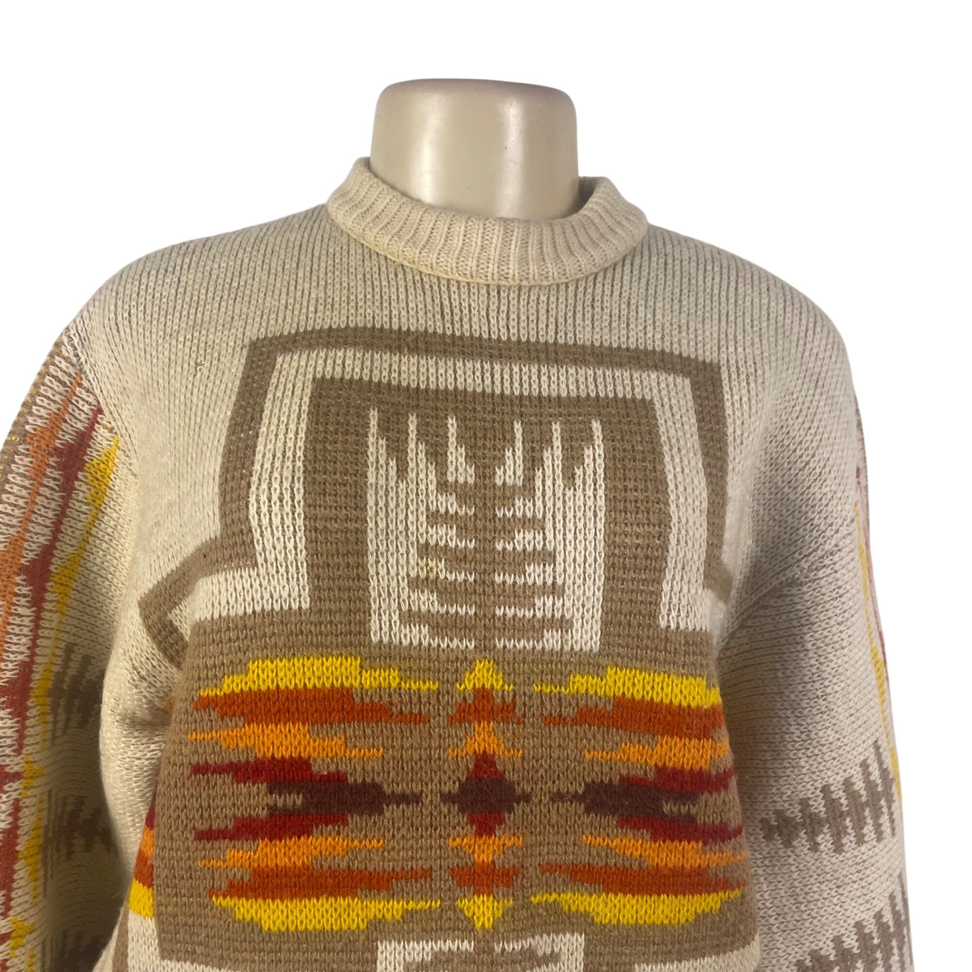Pendleton Mens Beige Wool Sweater Multicolor Native American Print Size M