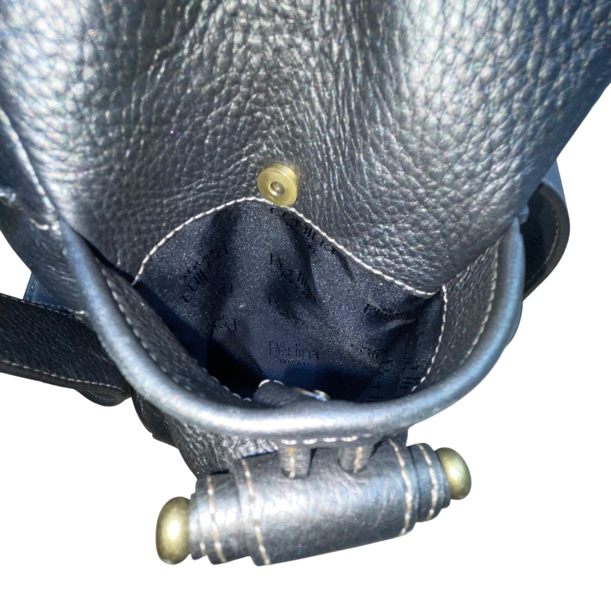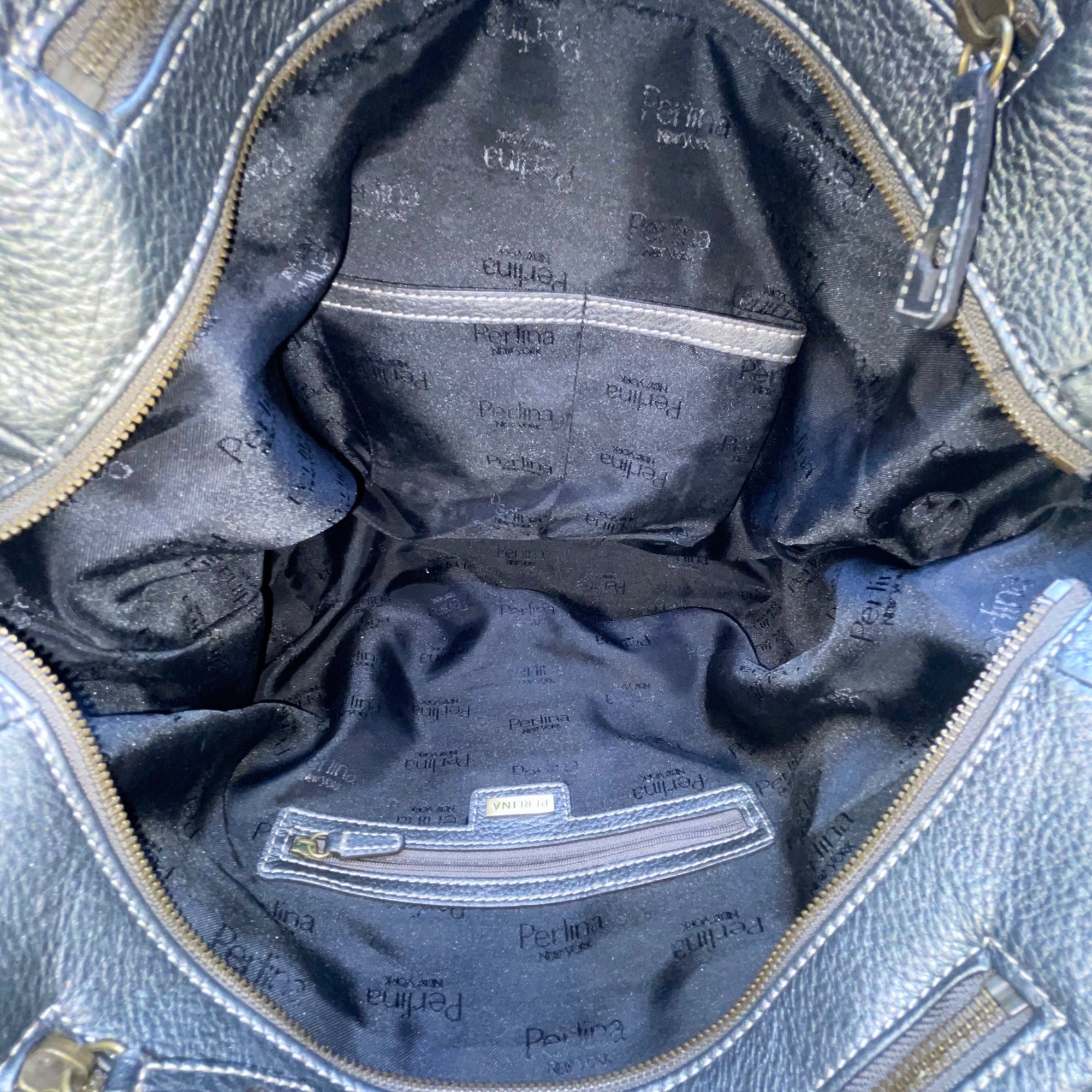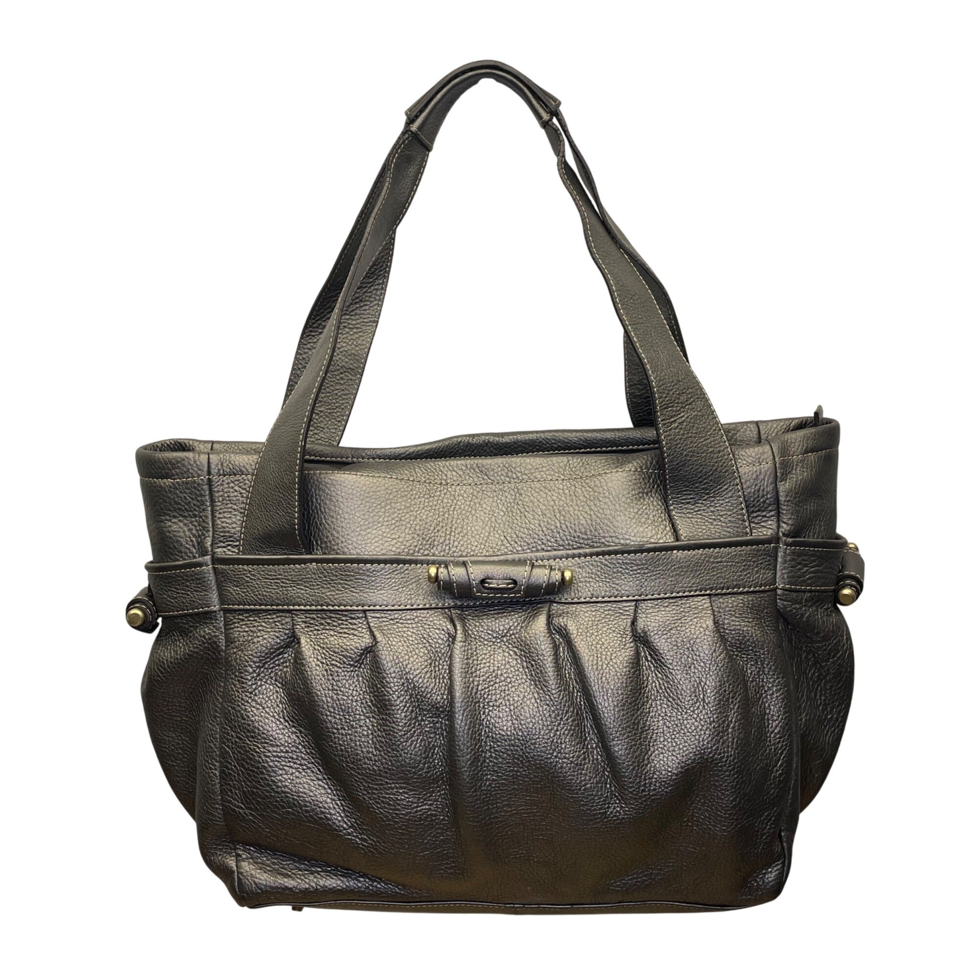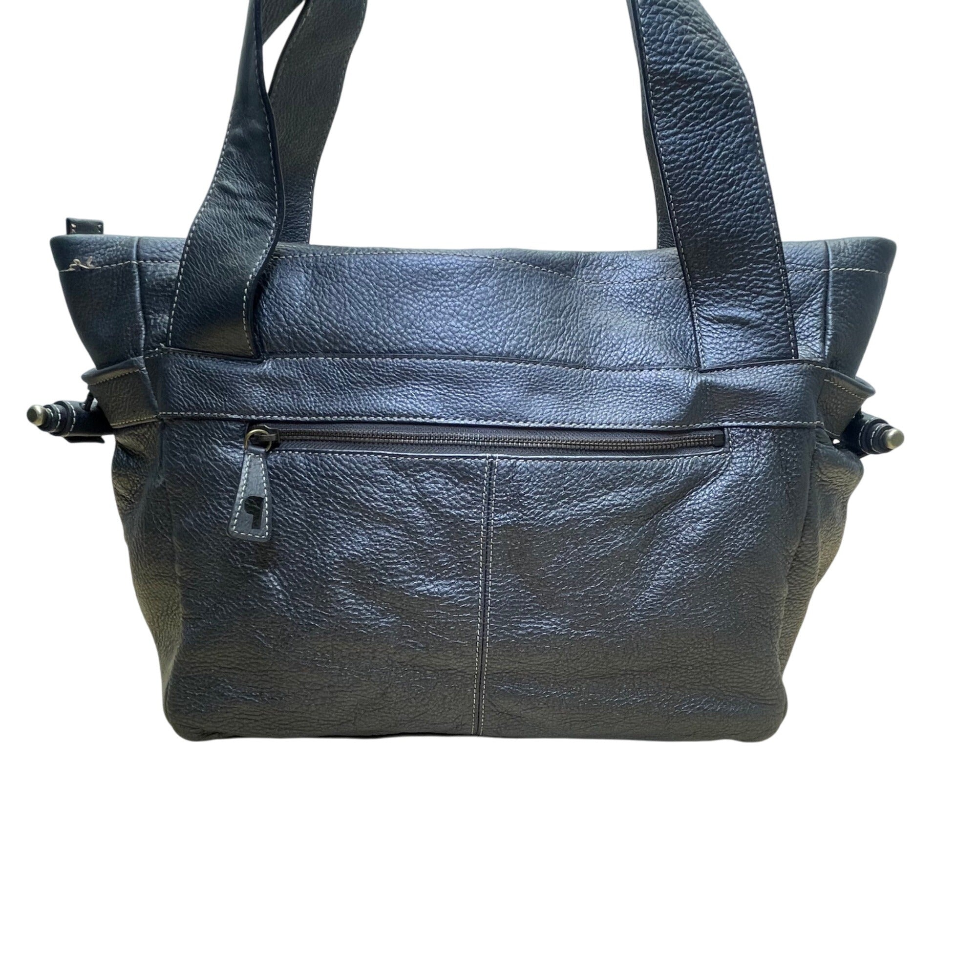 Perlina Women’s Dark Silver Leather Snap & Zip Closure Shoulder Satchel Bag