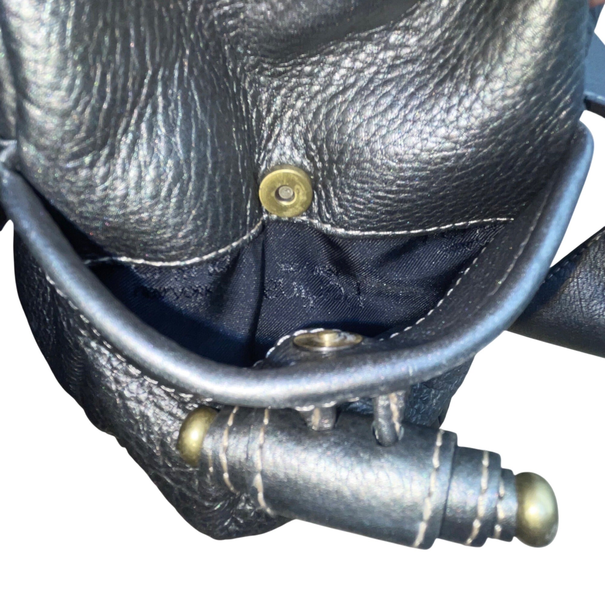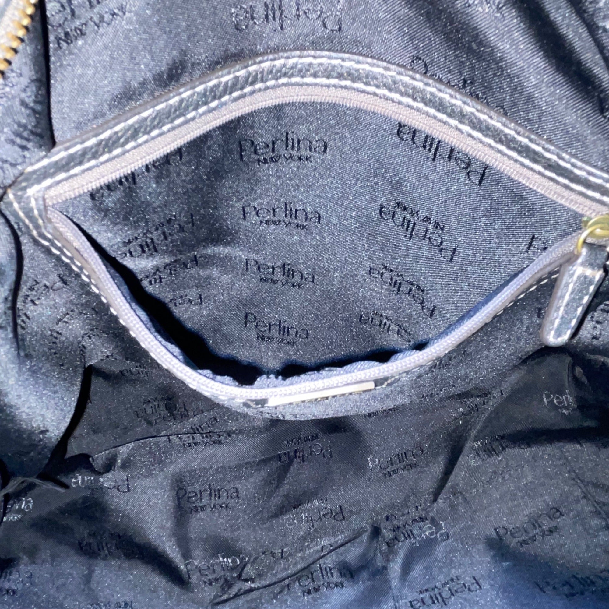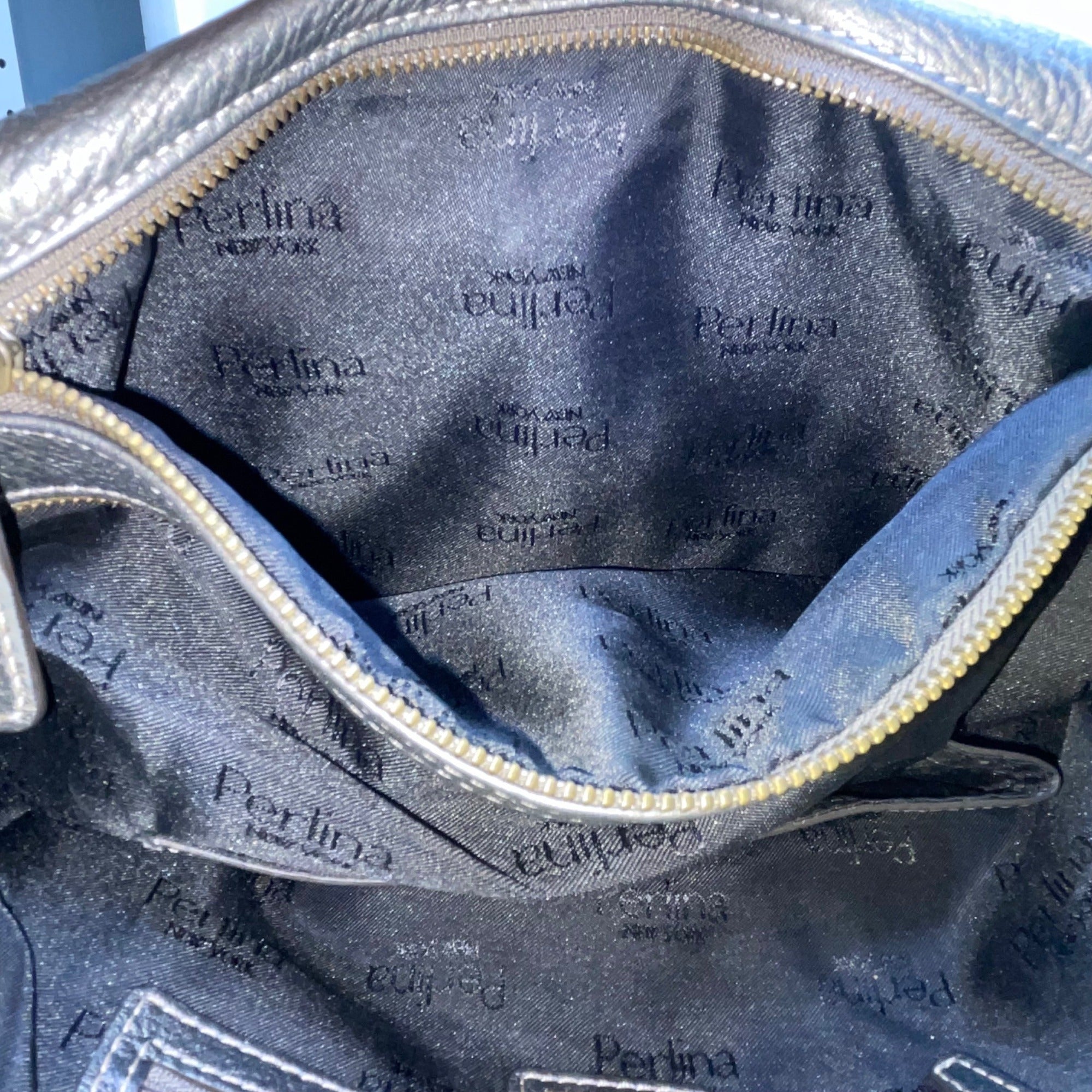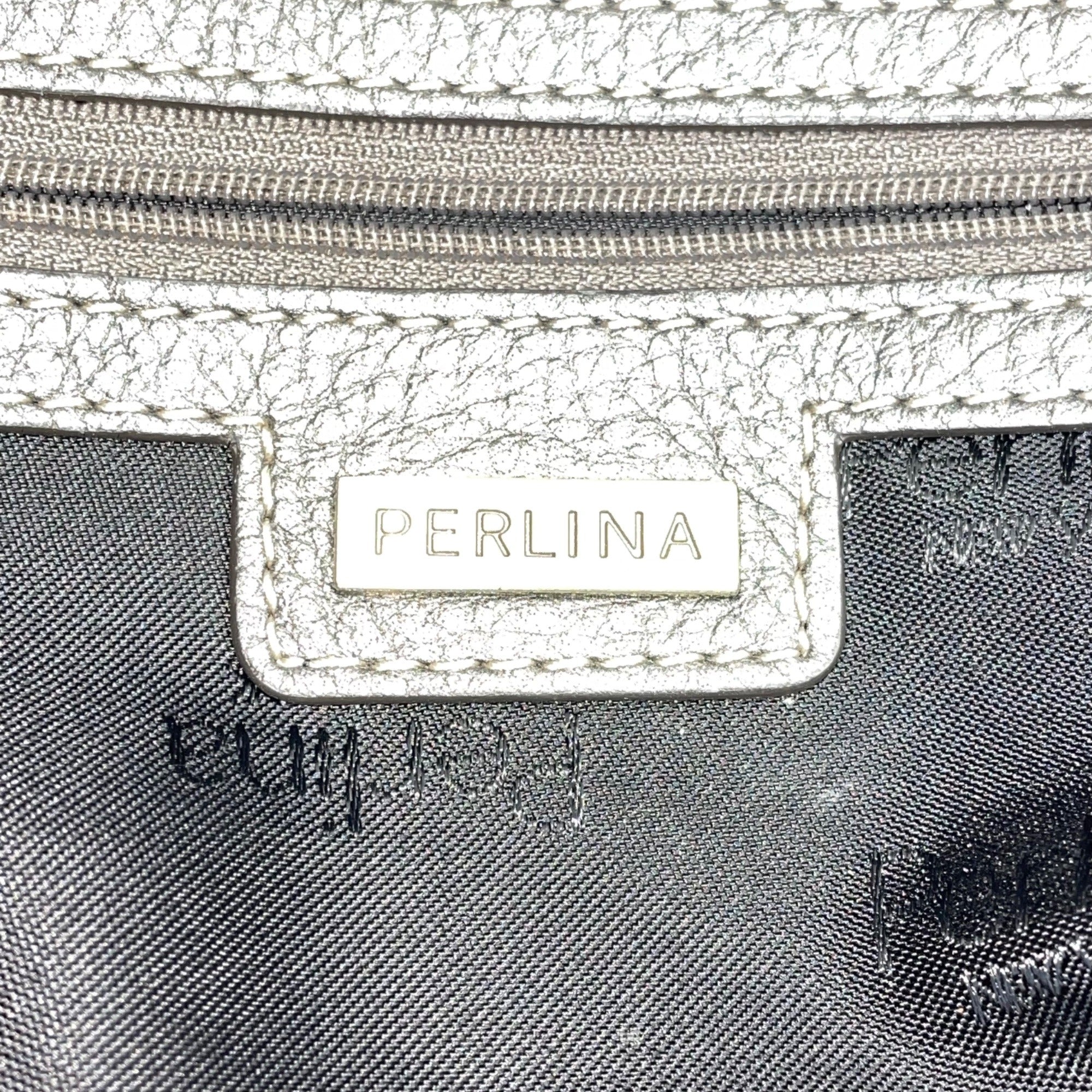 Perlina Women’s Dark Silver Leather Snap & Zip Closure Shoulder Satchel Bag