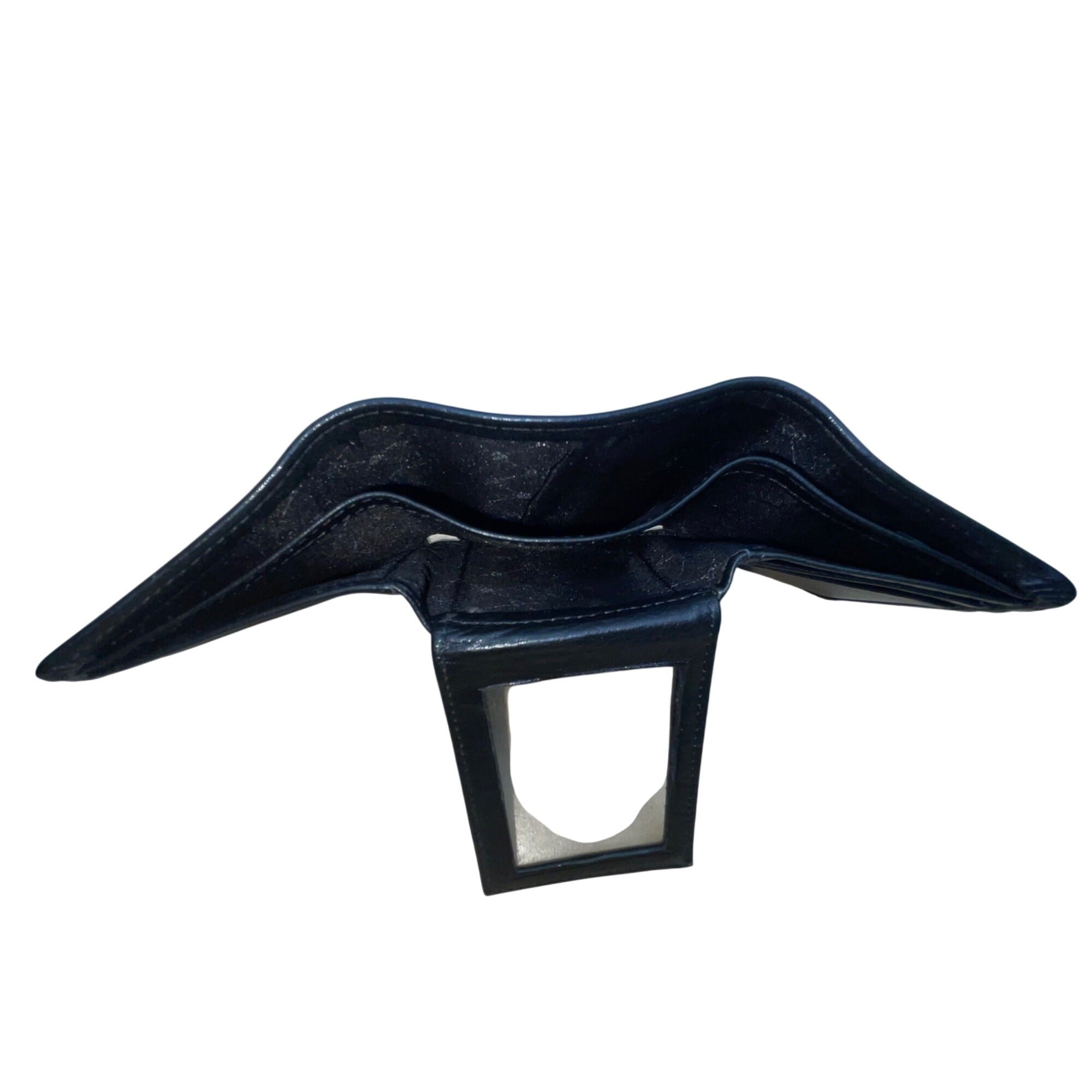 Perry Ellis Men Black Genuine Leather With ID Window & Card Slots Trifold Wallet