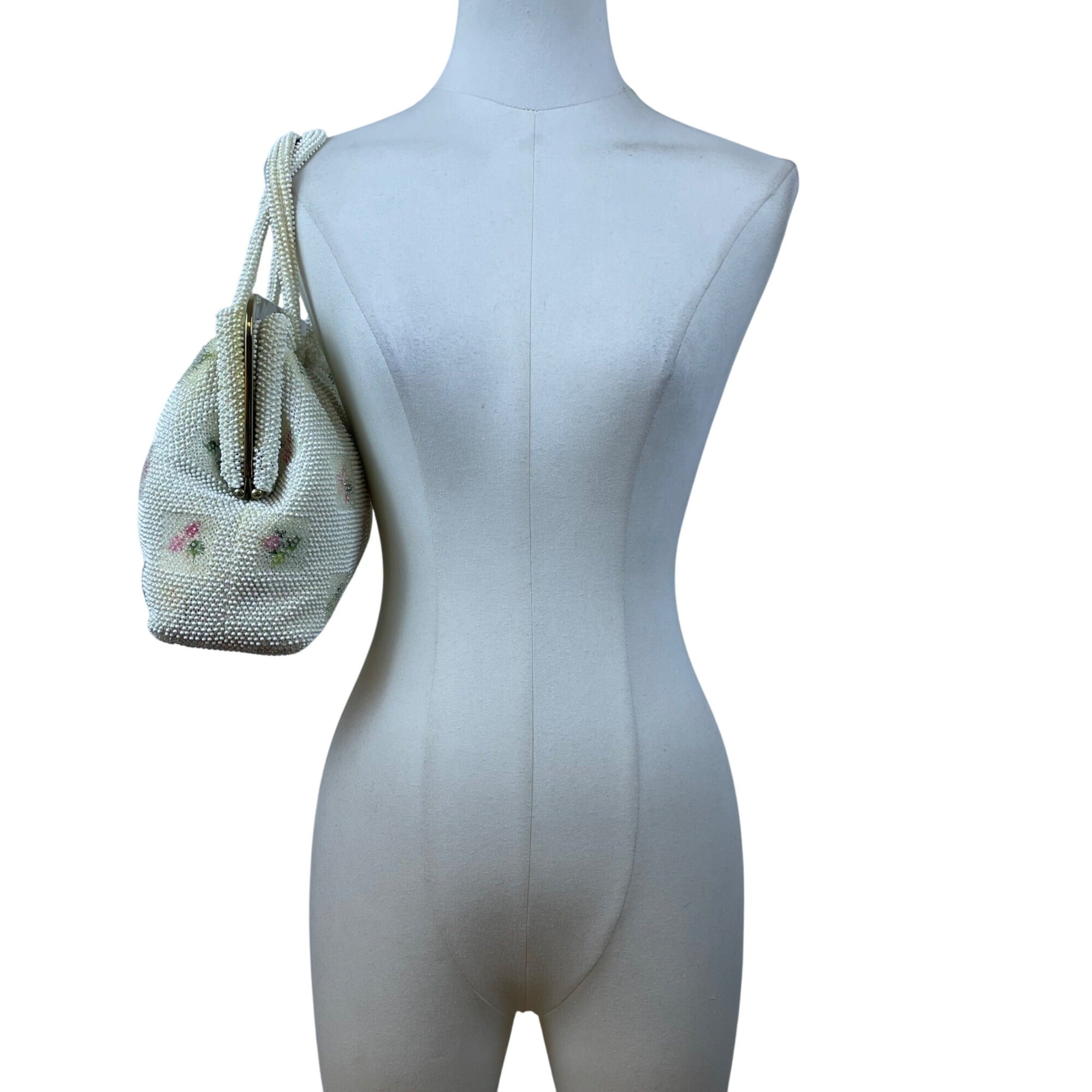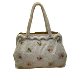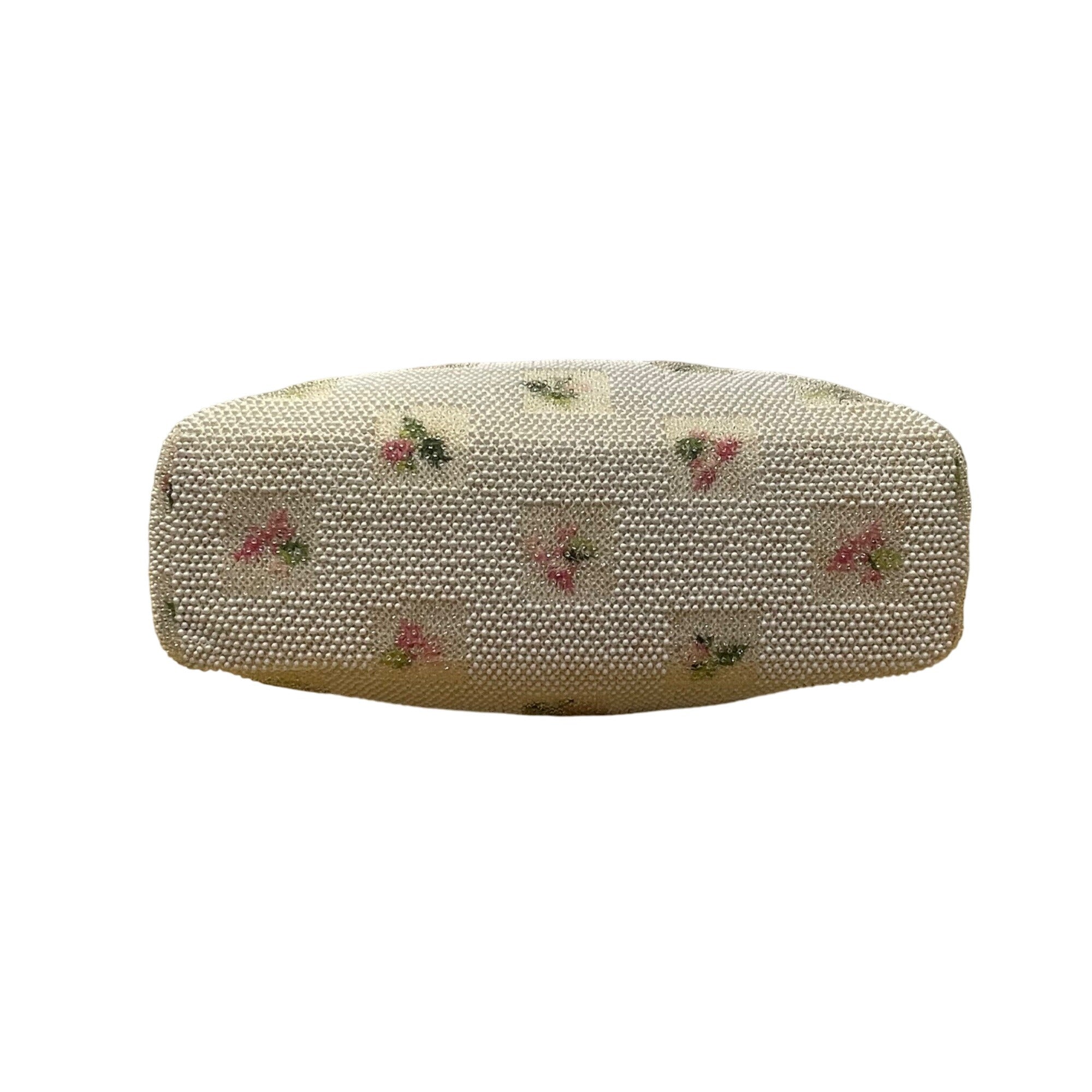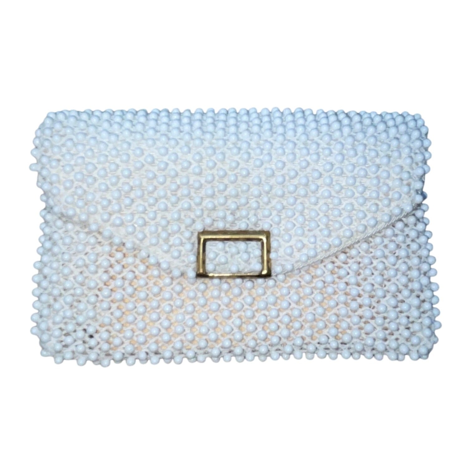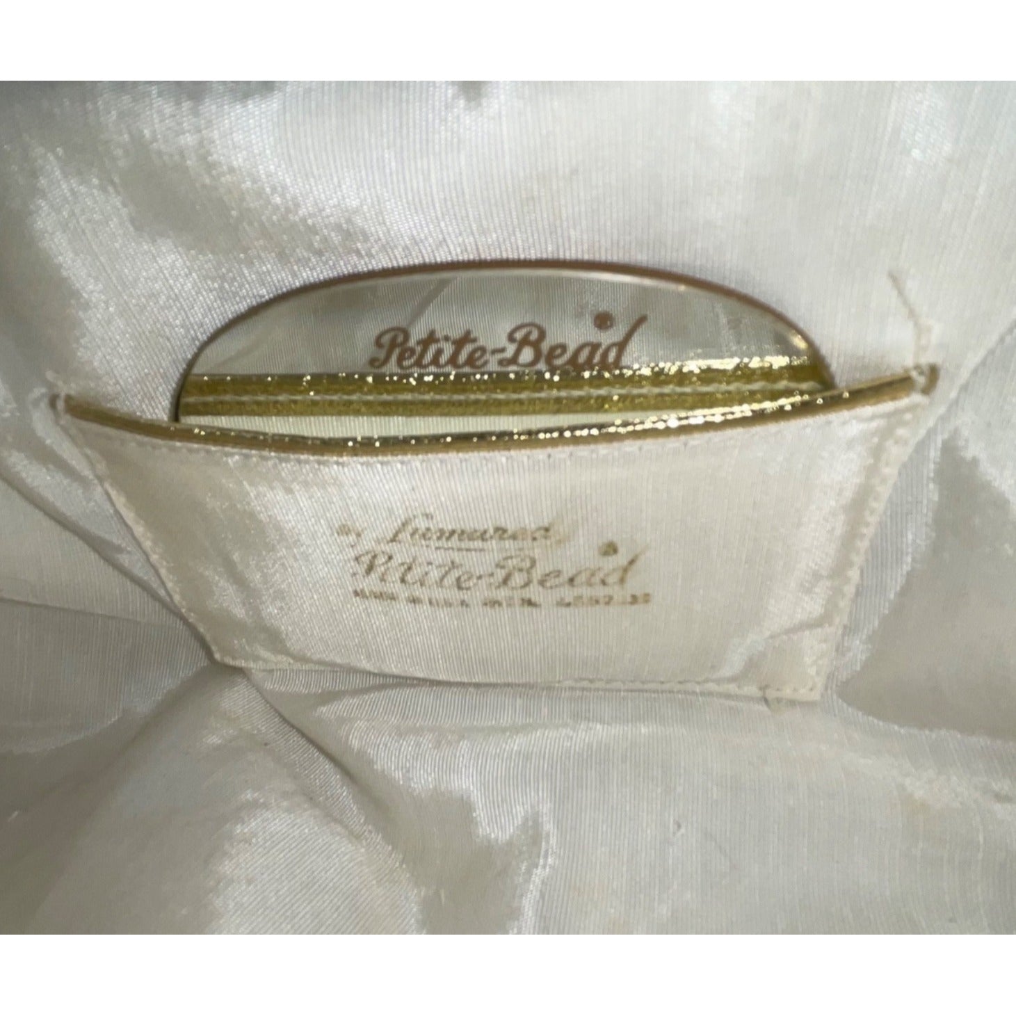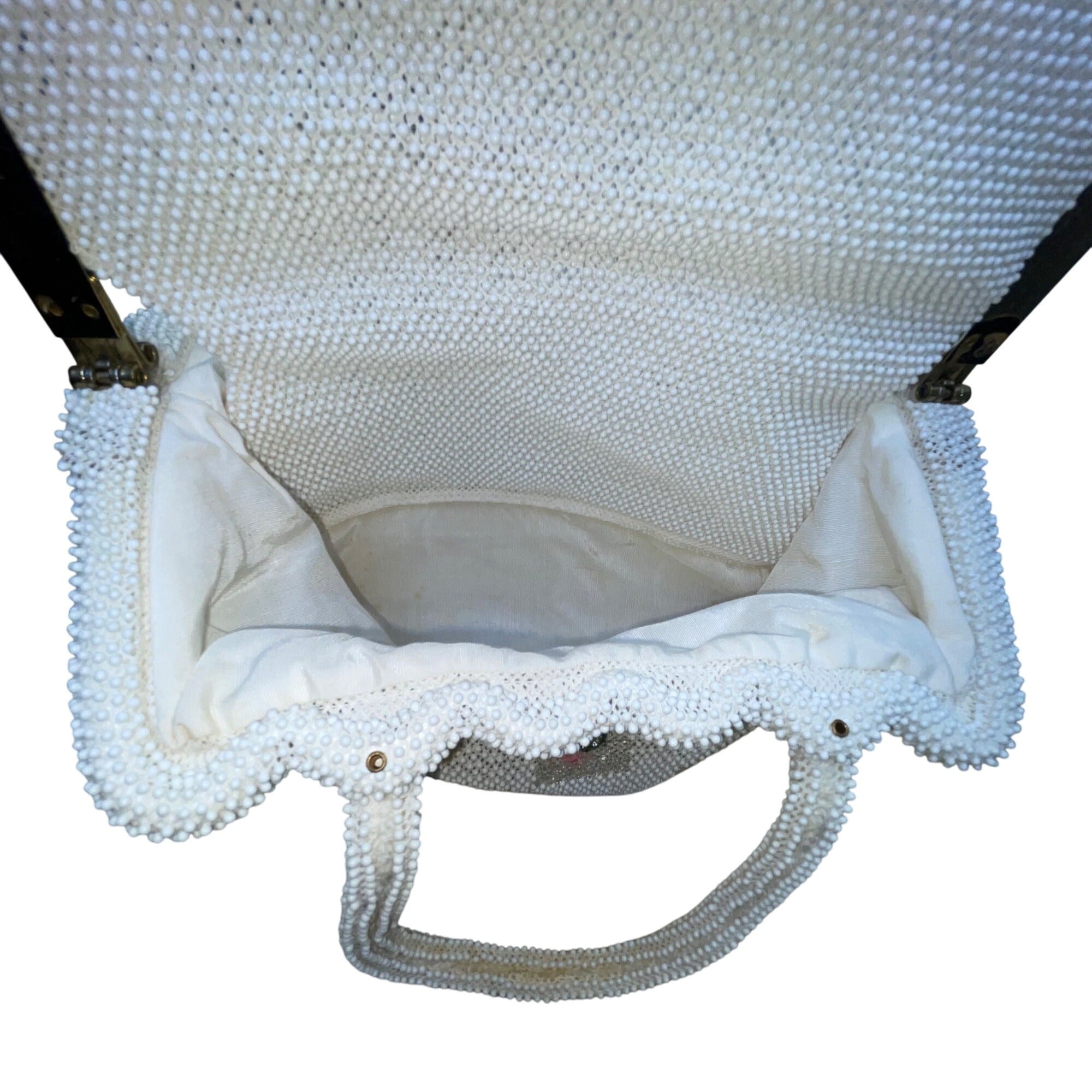 Petite-Bead Womens White Beaded Floral Vintage Scalloped Design Handbag