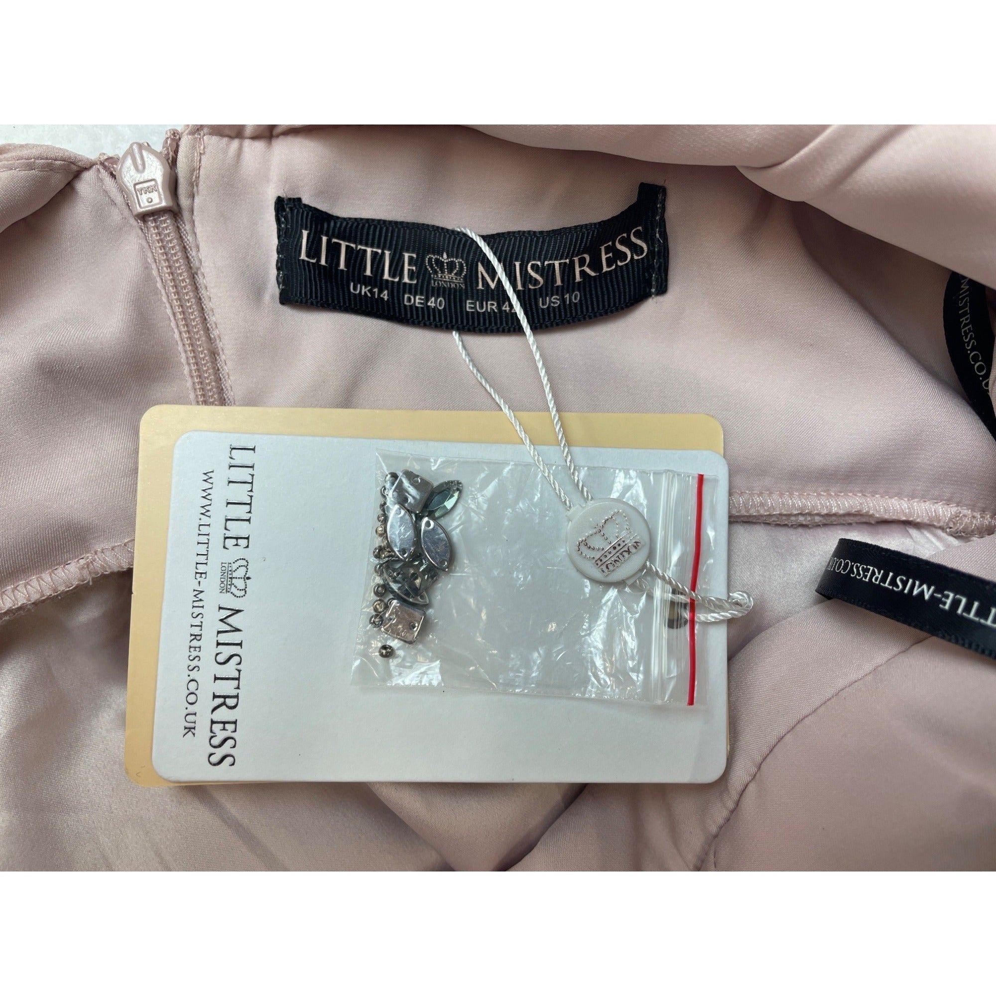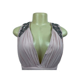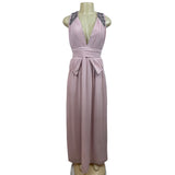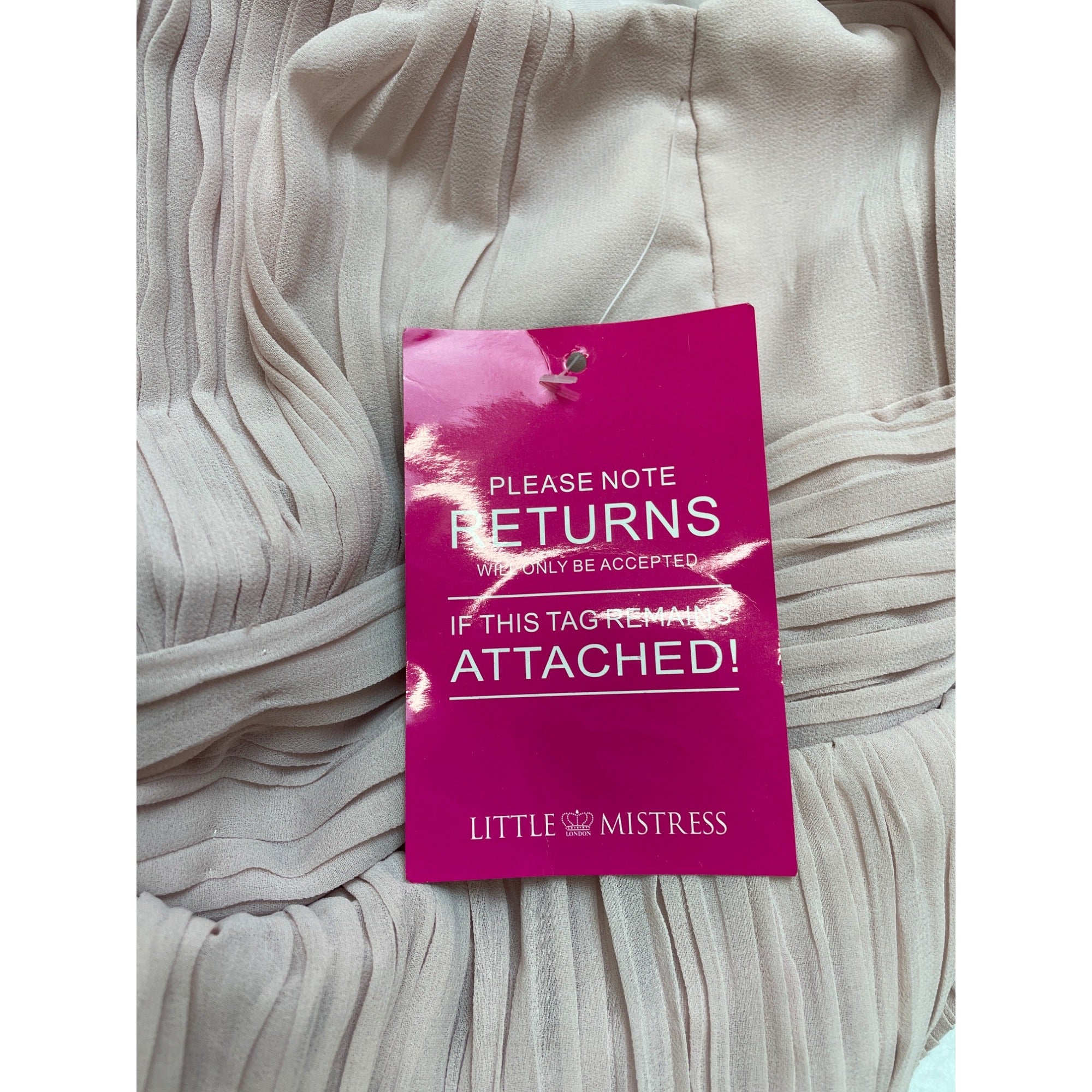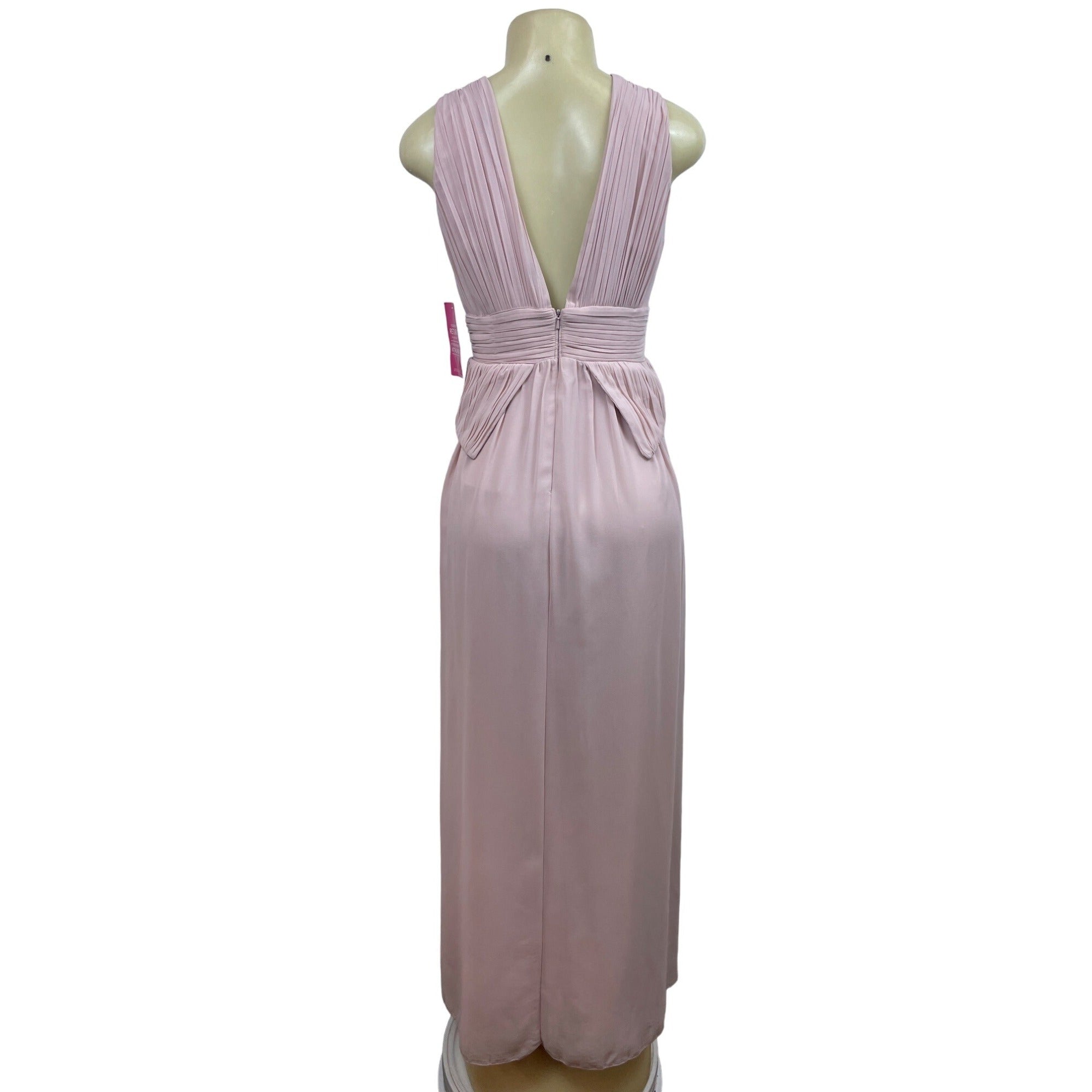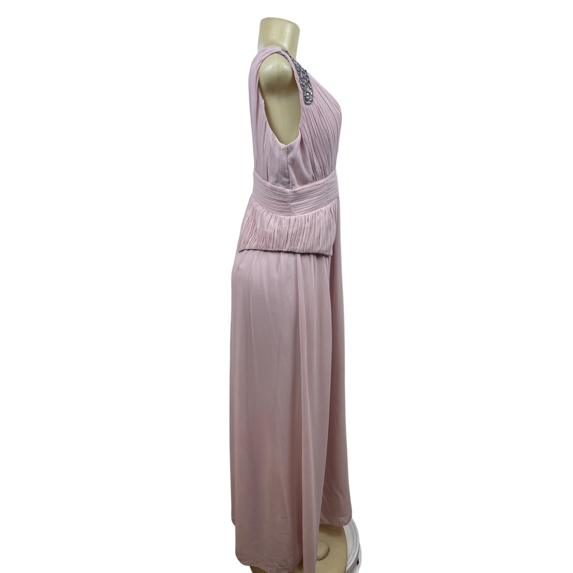 Pink Sleeveless Floor-Length Gown With Beaded Shoulder Details & Pleated Waist