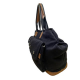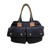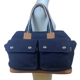Pottery Barn Kids Black Canvas With Snap Pockets & Leather Accents Diaper Bag