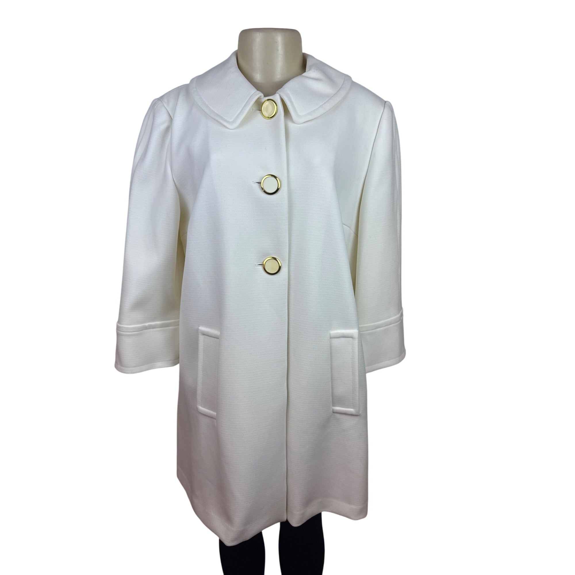Premise Women's White Mid Length Button Up Coat With Pockets Size L