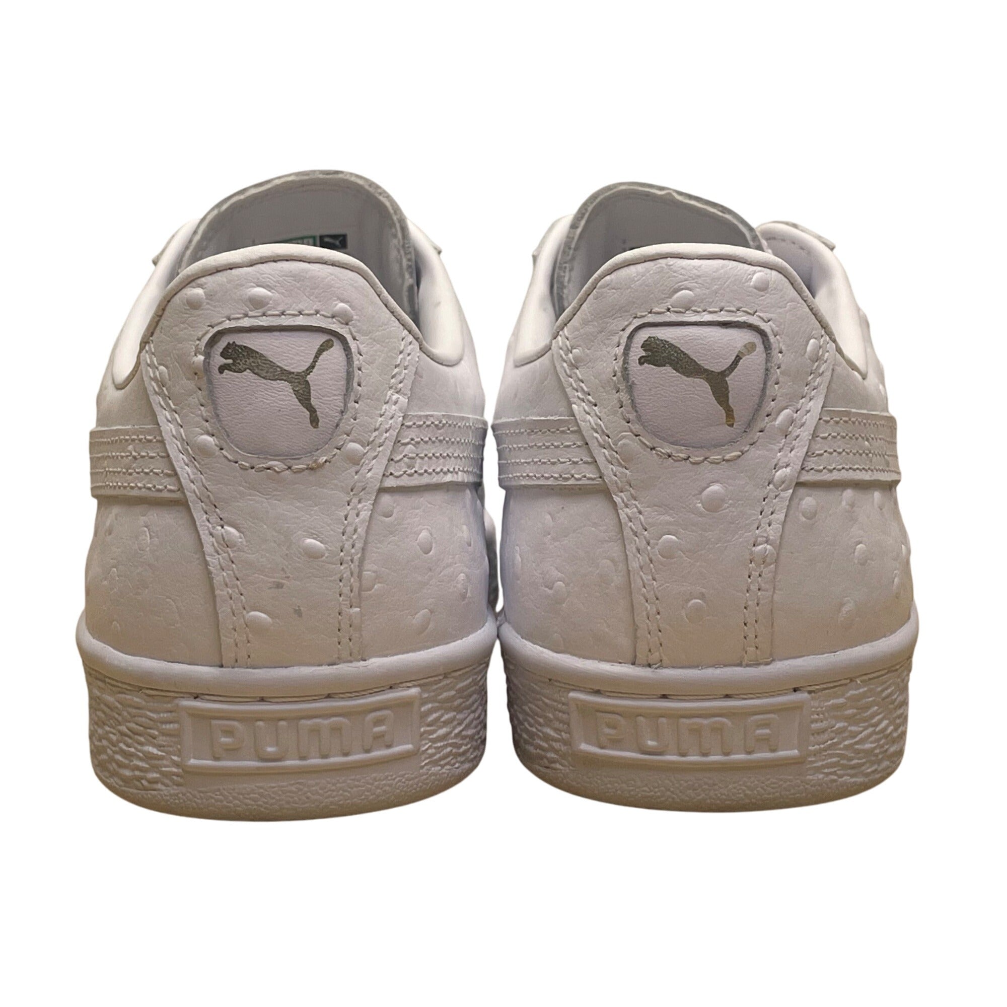 Puma Women’s White Leather Low-Top Lace-Up Basket Ostrich Texture Sneakers Size 9.5