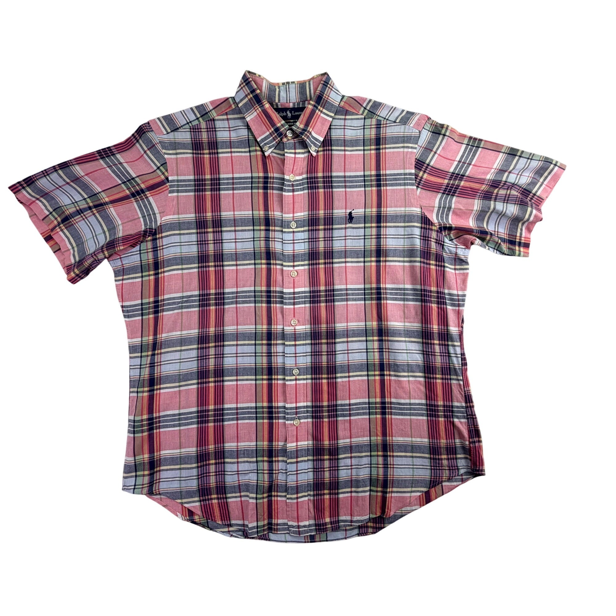 Ralph Lauren Mens Multicolor Cotton Plaid Short Sleeve Button-Down Shirt Size L
