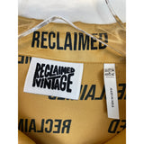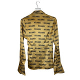 Reclaimed Vintage Womens Gold Satin Lace-Up Blouse All Over Text Print UK 14 US 10