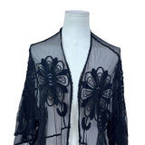 ReeBees Black Lace Women's Kimono Floral Embroidered Cardigan Duster Cover Up OS