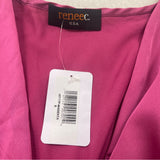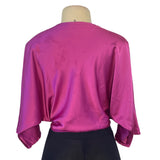 Renee C Women's Satin Fuchsia Knot Front Blouse With 3/4 Sleeves Size S