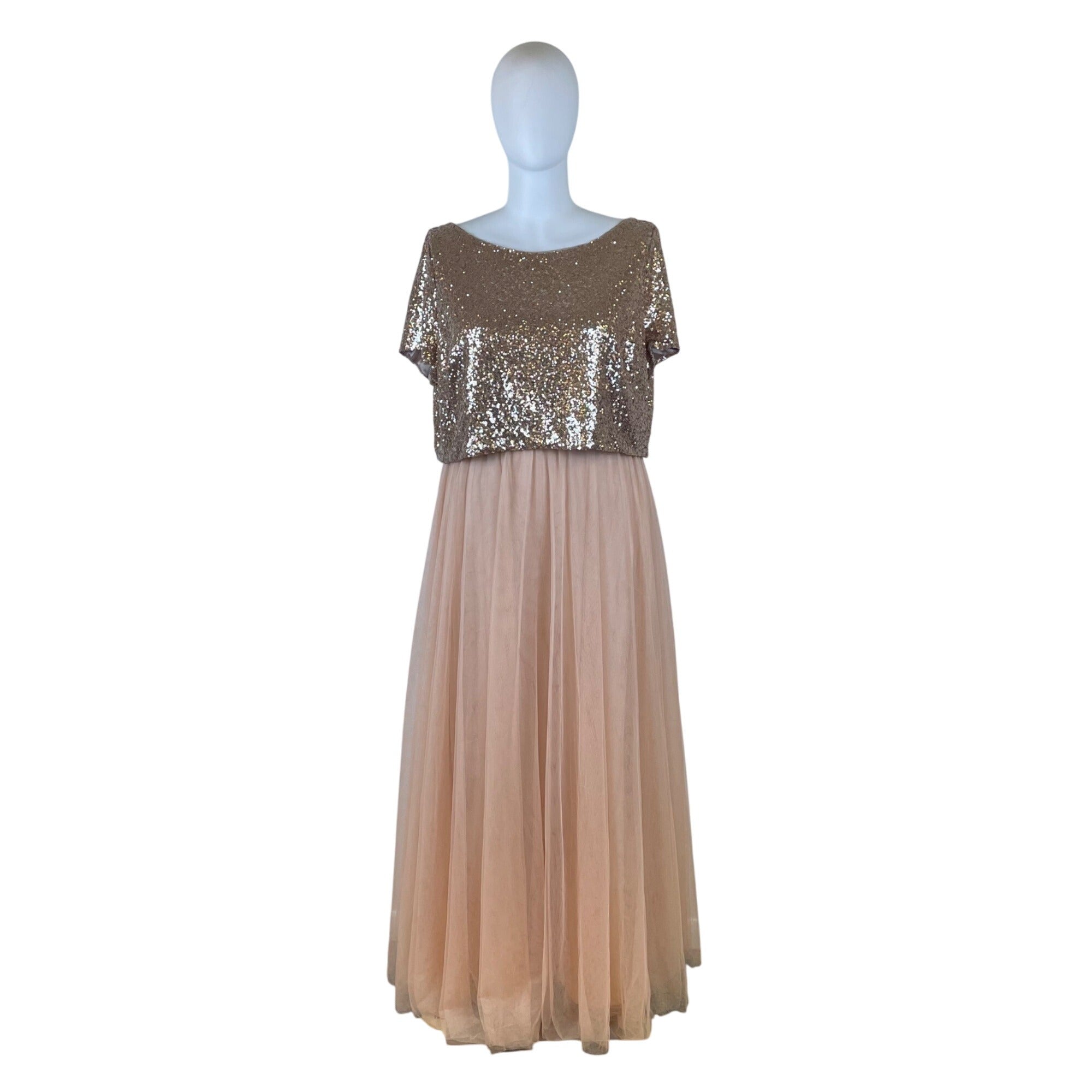 Revelry Women’s Rose Gold Sequin Top & Blush Pink Tulle Skirt Set Sz 4XL 28