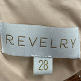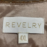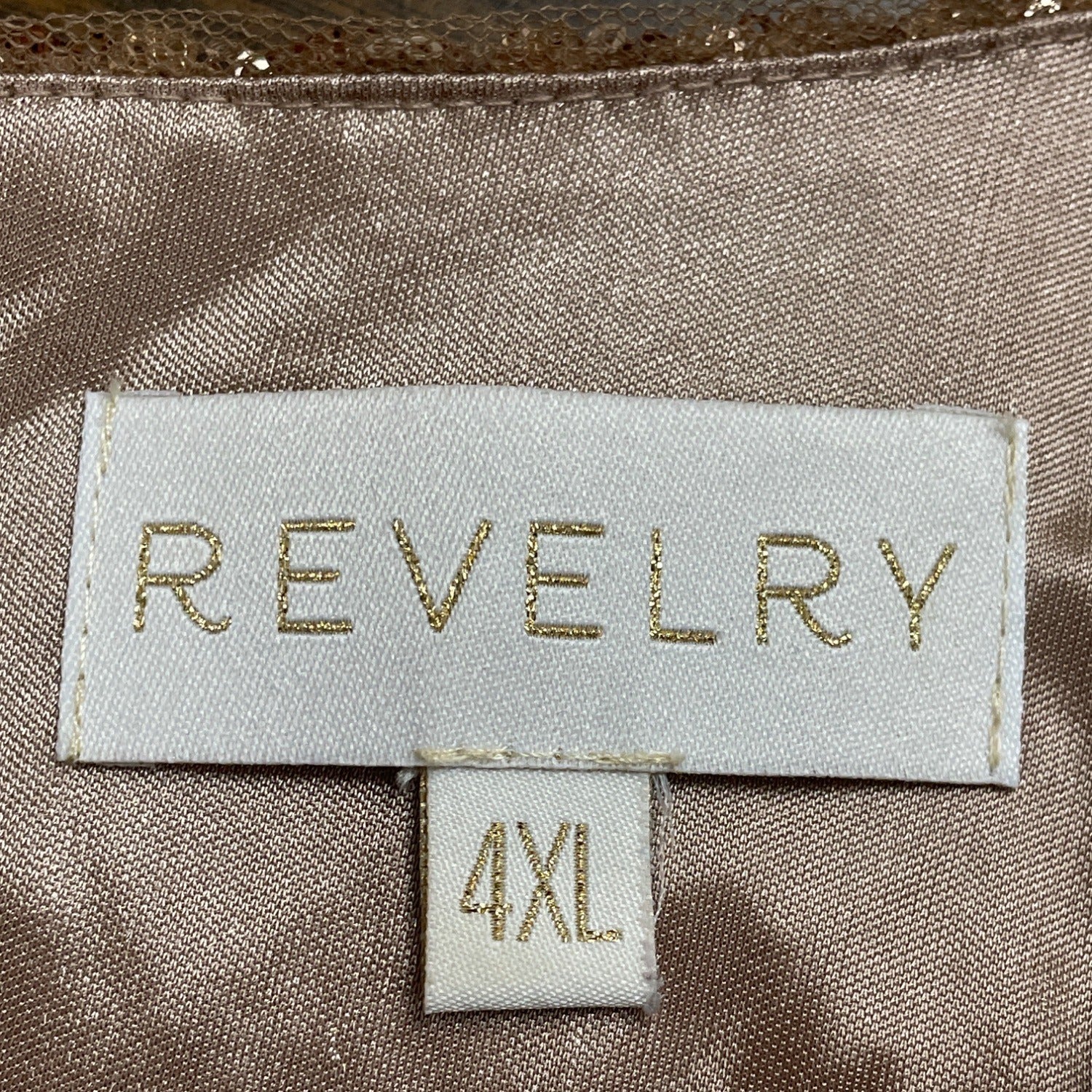 Revelry Women's Rose Gold Sequin Top & Blush Pink Tulle Skirt Set features a dazzling sequin shirt in size 4XL and a flowing blush tulle skirt in size 28. Made entirely of durable polyester, this set is in excellent used condition with no flaws or defects.