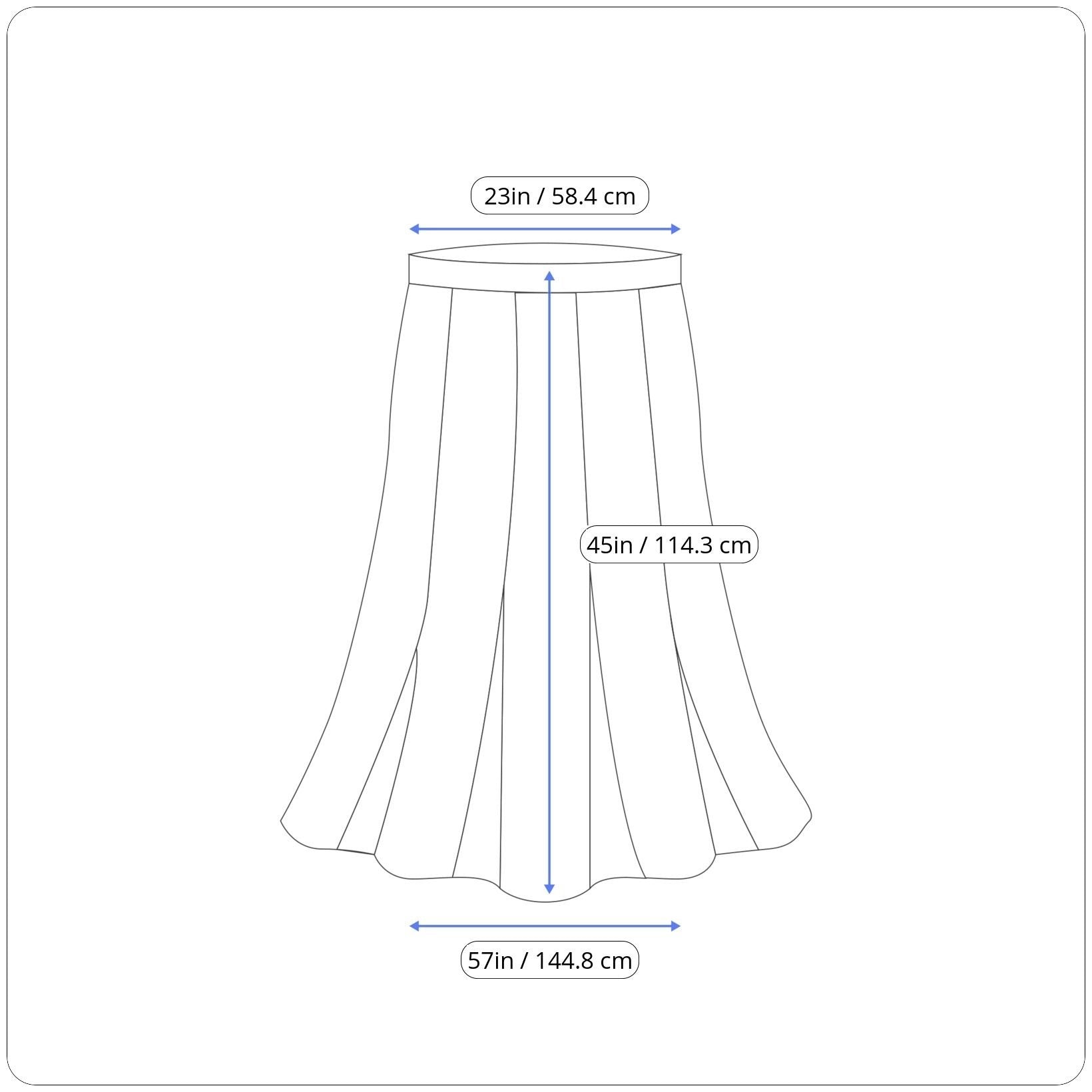 For the best experience, we recommend knowing your measurements before purchasing. A helpful tip is to take your favorite skirt set and compare its measurements (taken flat) to those listed. This will give you a better sense of how the item will fit.