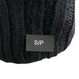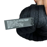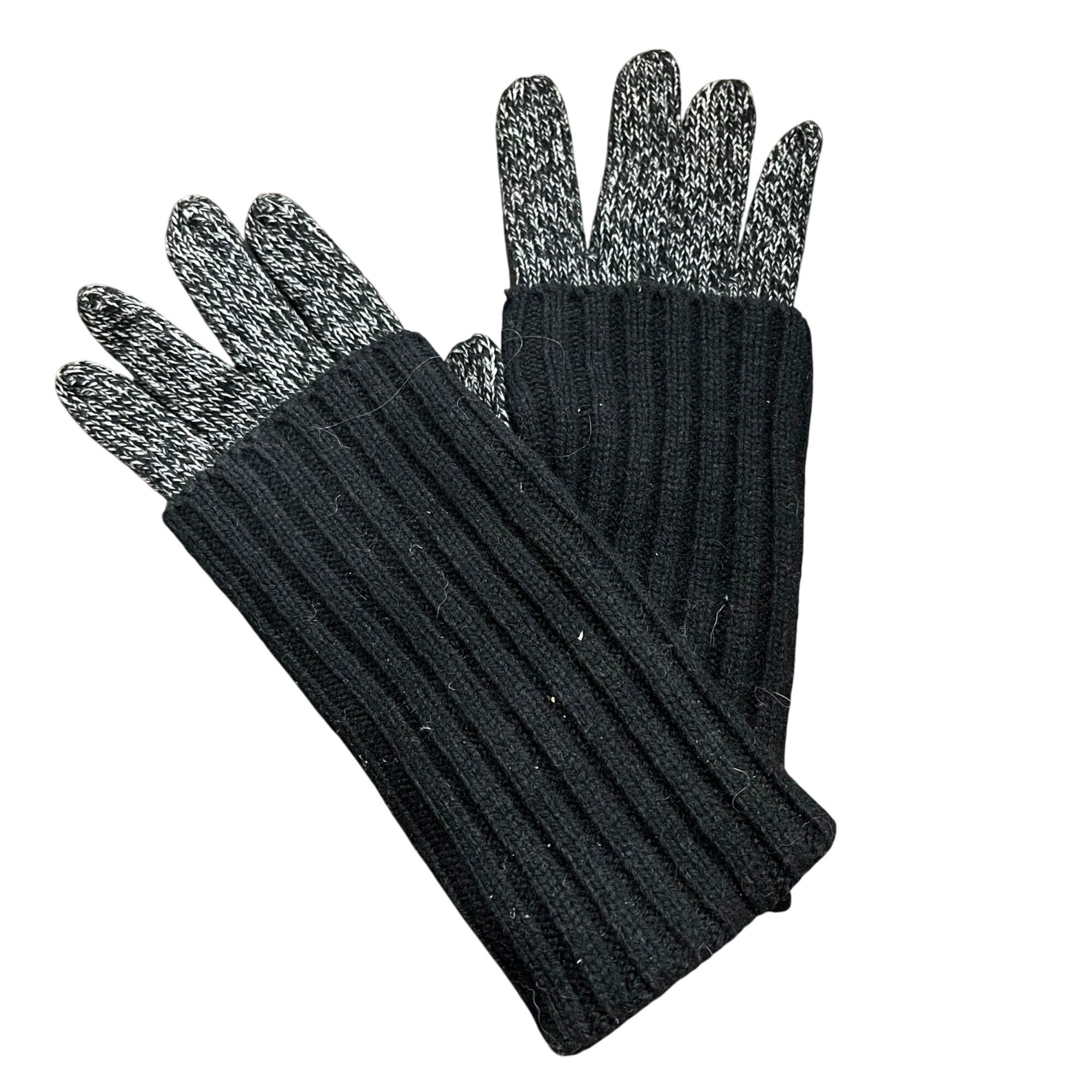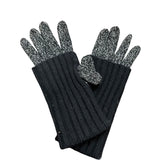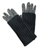 Ribbed Knit Wool-Blend Womens Black & Gray Touchscreen Gloves With Leather Palm Patch S