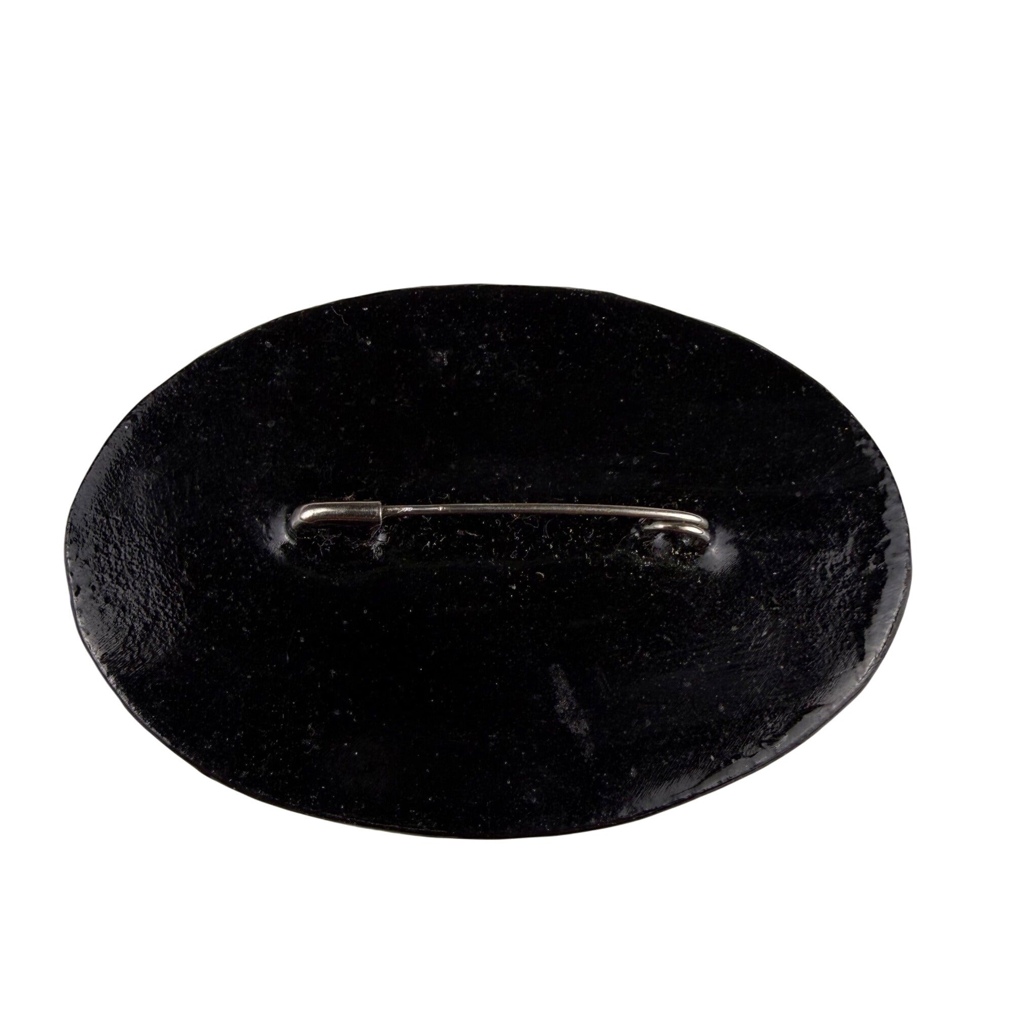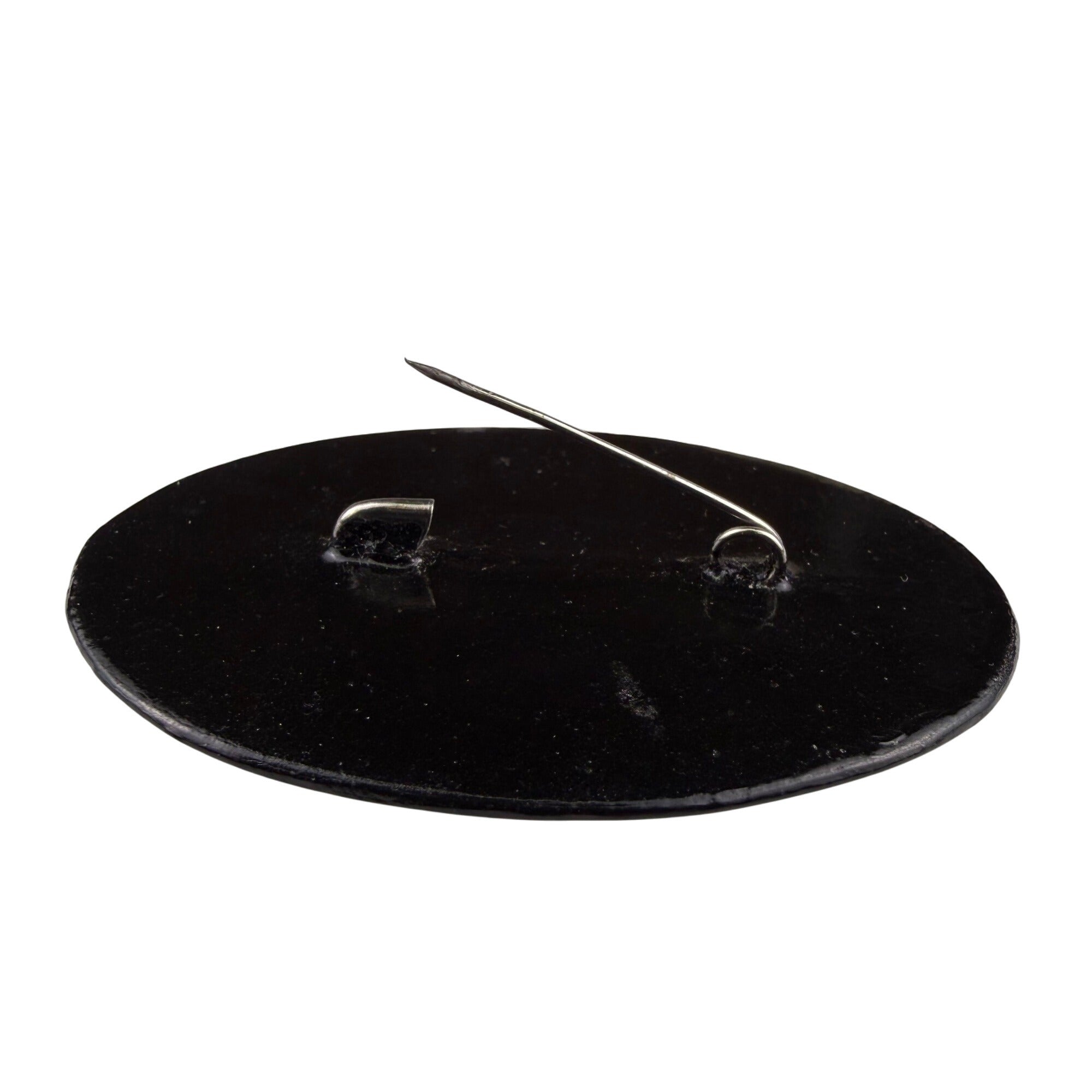 Russian Vintage Hand-Painted Brooch Black Lacquer Fairy Tale Oval Scene