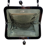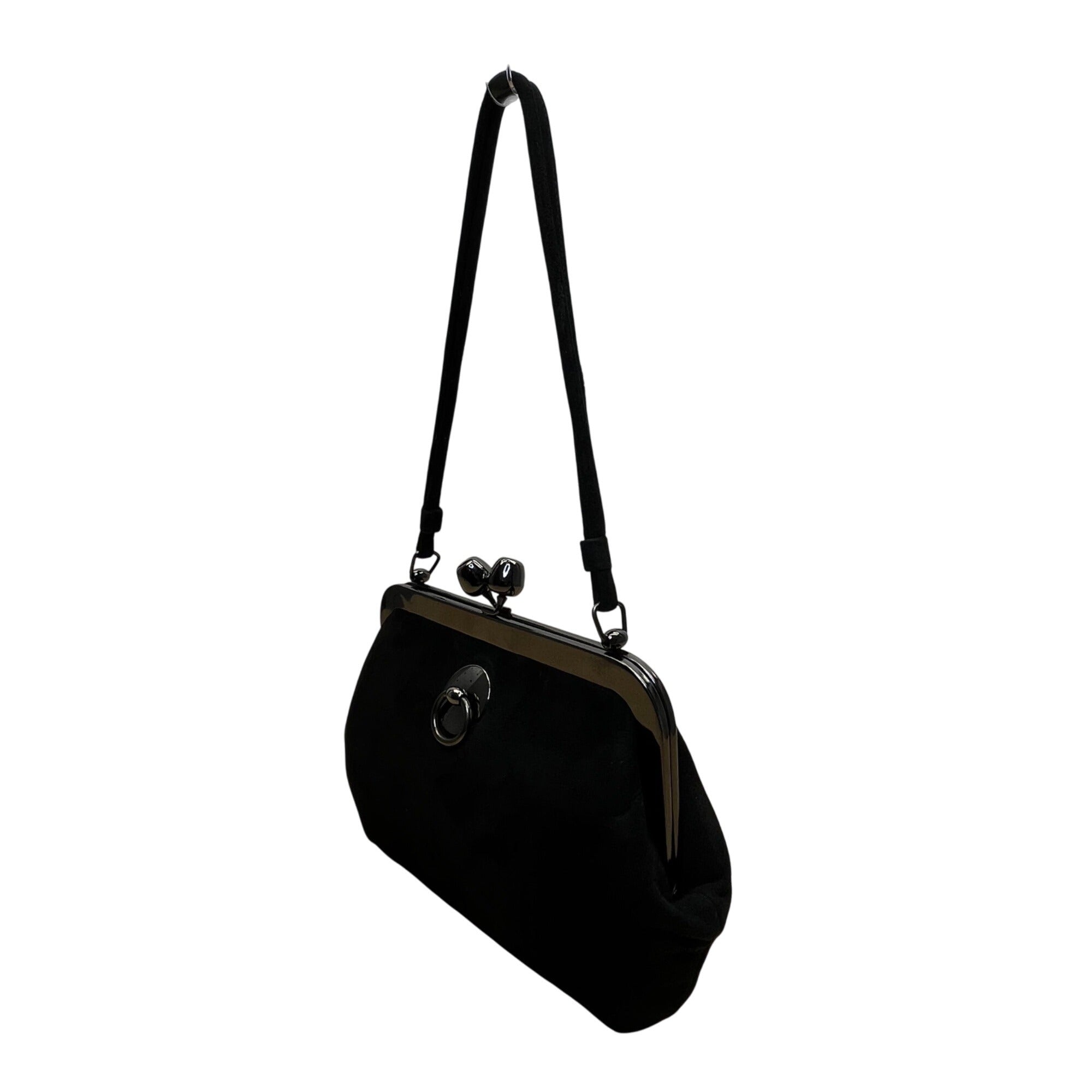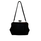 Saber Women’s Black Suede With Silver Metal Frame & Kiss Lock Closure Clutch Bag