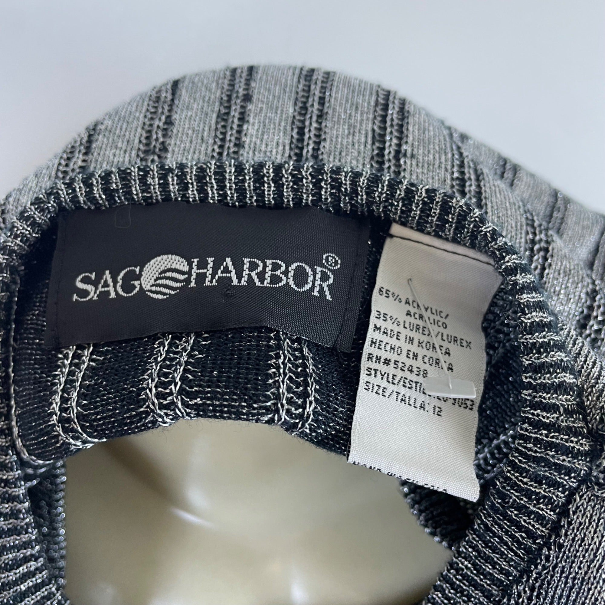Sag Harbor Women's Gray Acrylic/Lurex Button Up V Neck Cardigan Sweater Size 12