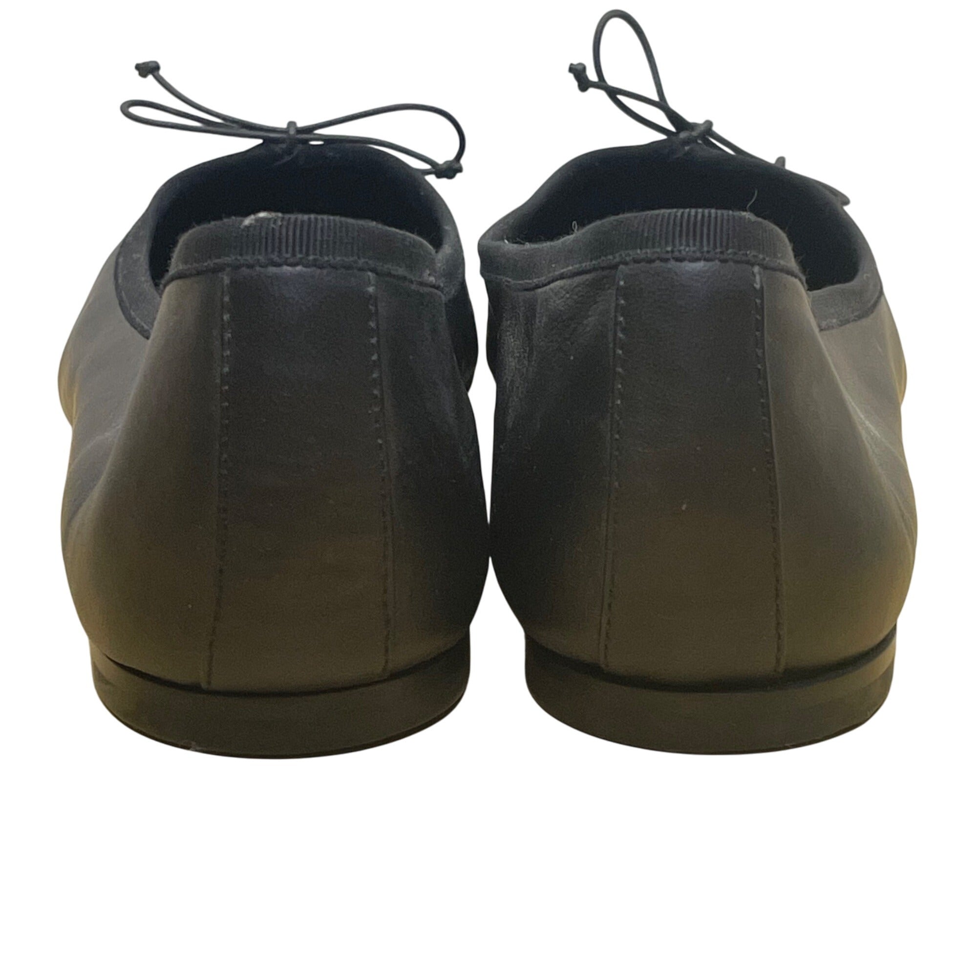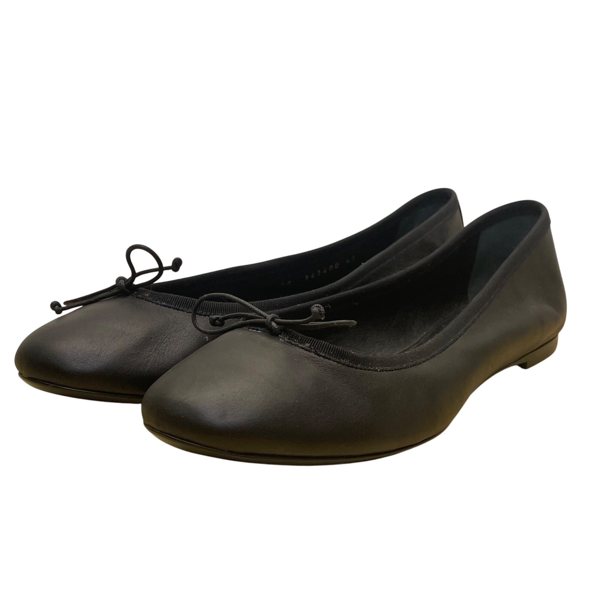 Saint Laurent Womens Black Leather With Bow Detail Ballet Flats Size 10