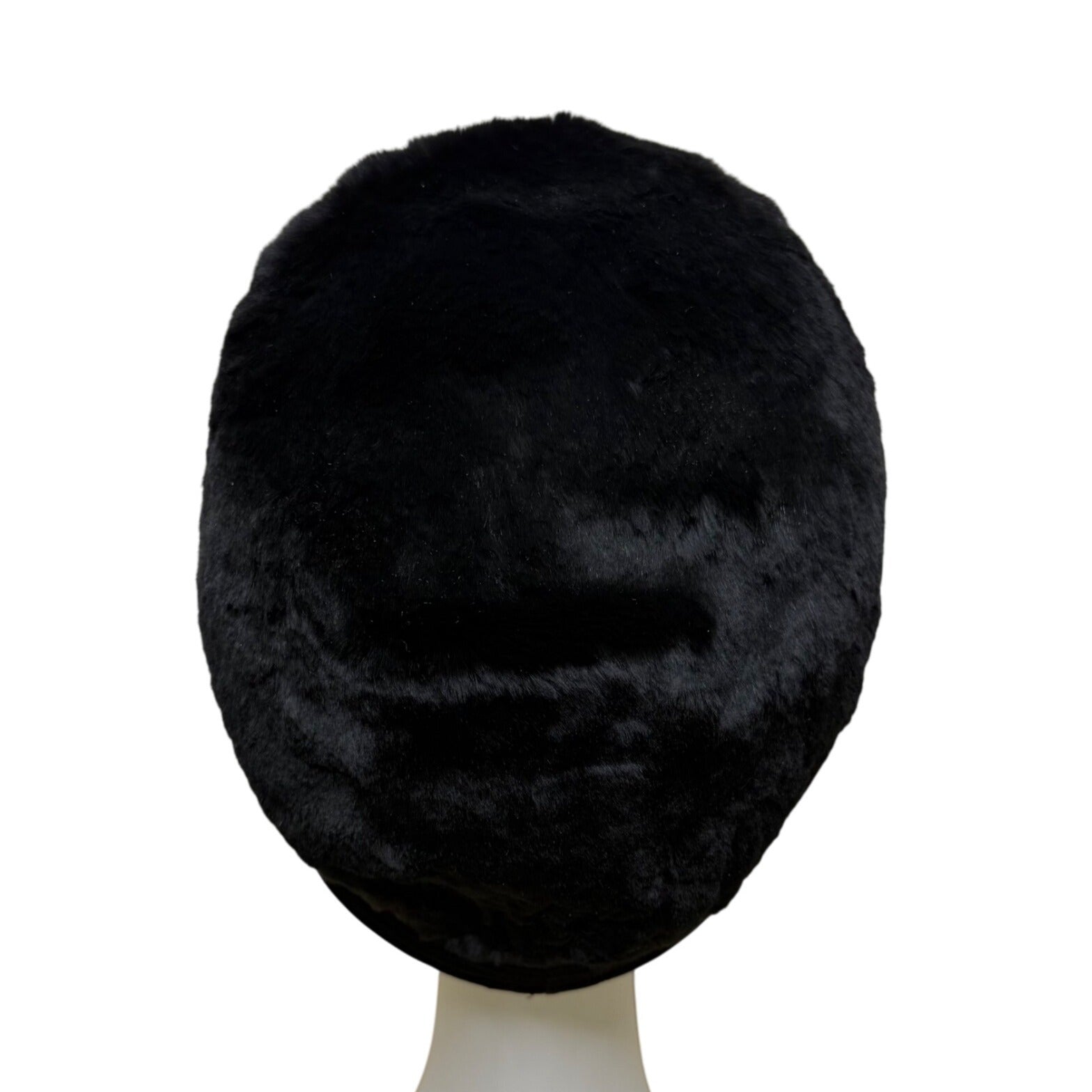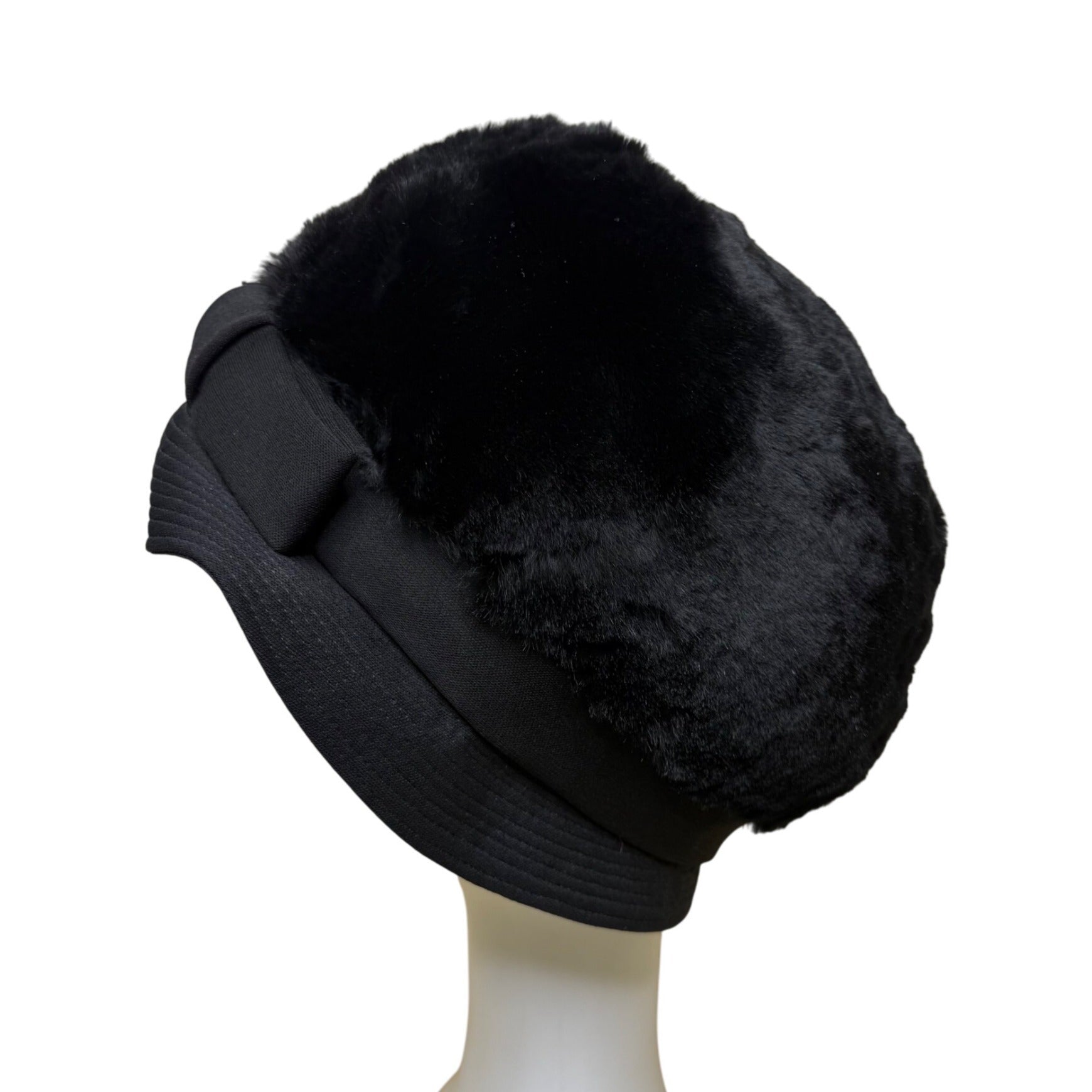 Saks Fifth Avenue 1960s Womens Black Faux Fur Cloche Hat With Bow Red Lining
