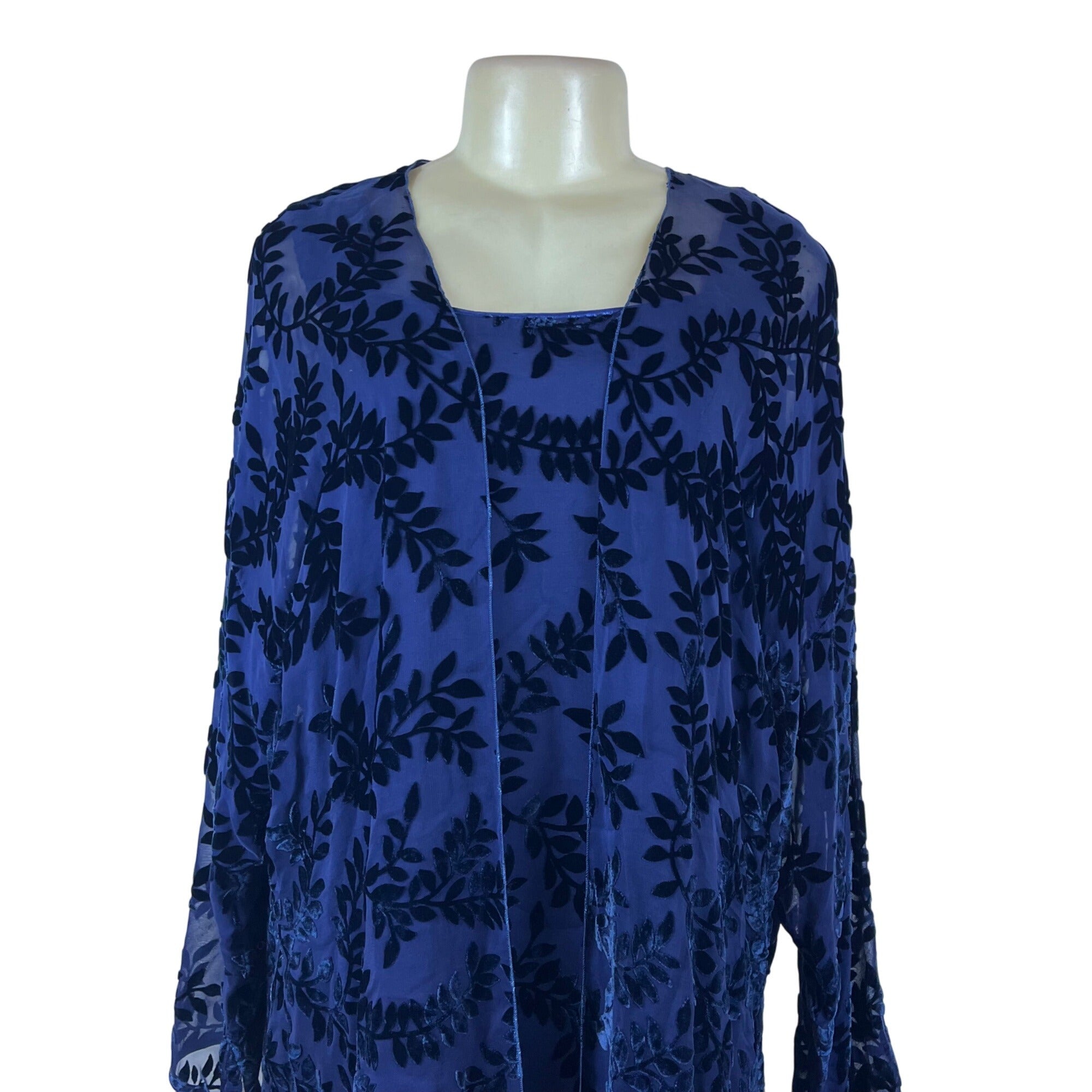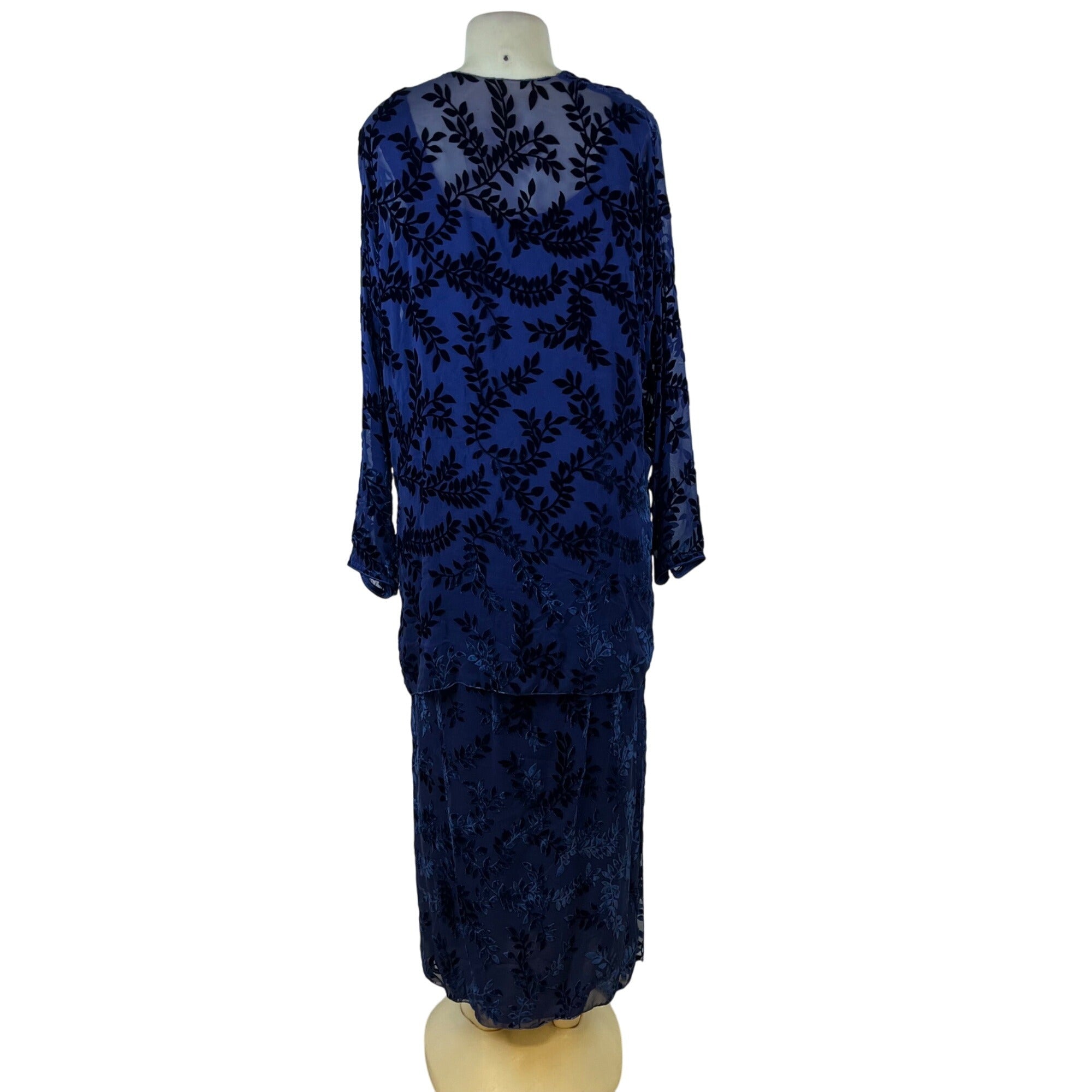 Sara Mique Three-Piece Set Women's Blue Velvet Leaf Patterned Size L