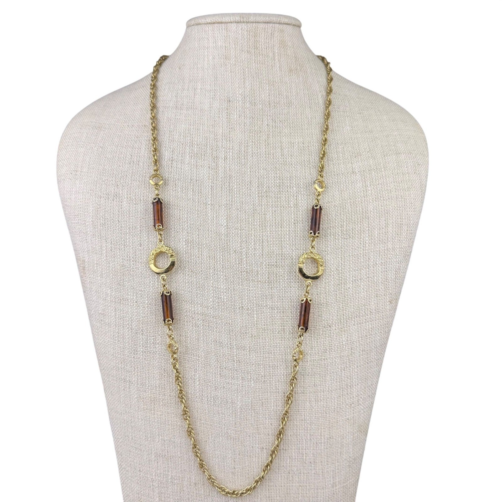 Sarah Coventry Womens Gold Tone Chain Necklace With Amber Accents