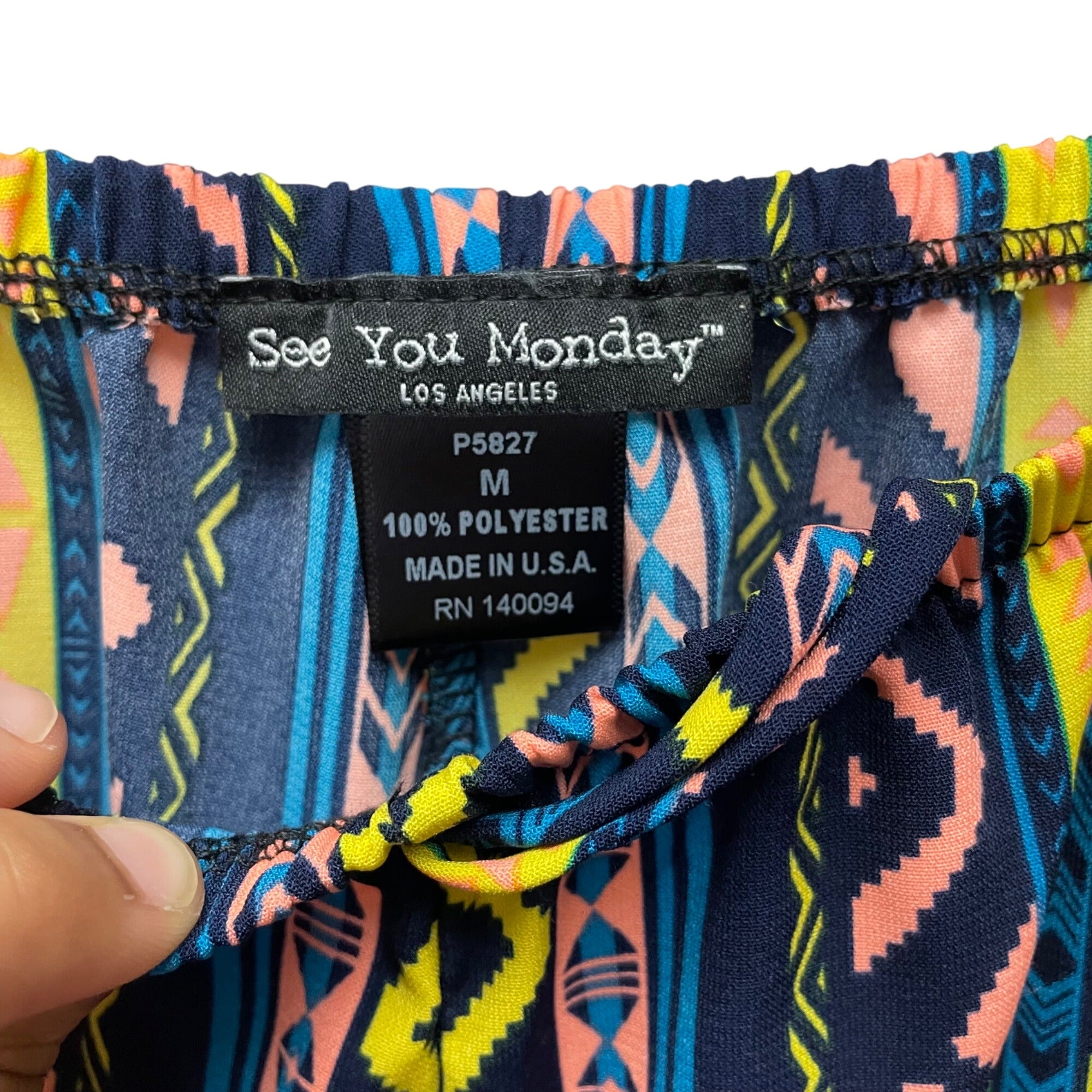 See You Monday Womens Multicolor Polyester Wide Leg Pants Size M Boho Style Made U.S.A