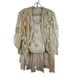 Shalite Womens Cream Lace Beaded Jacket & Ruffle Dress Set 100% Viscose Italy OS