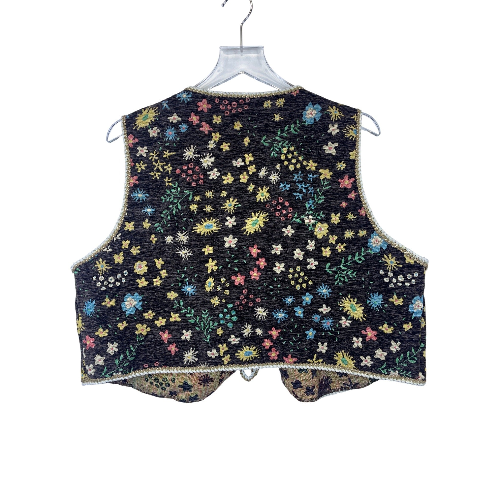 Shein Curve Womens Black Floral Tie-Front Vest 3XL Polyester & Viscose Blend
