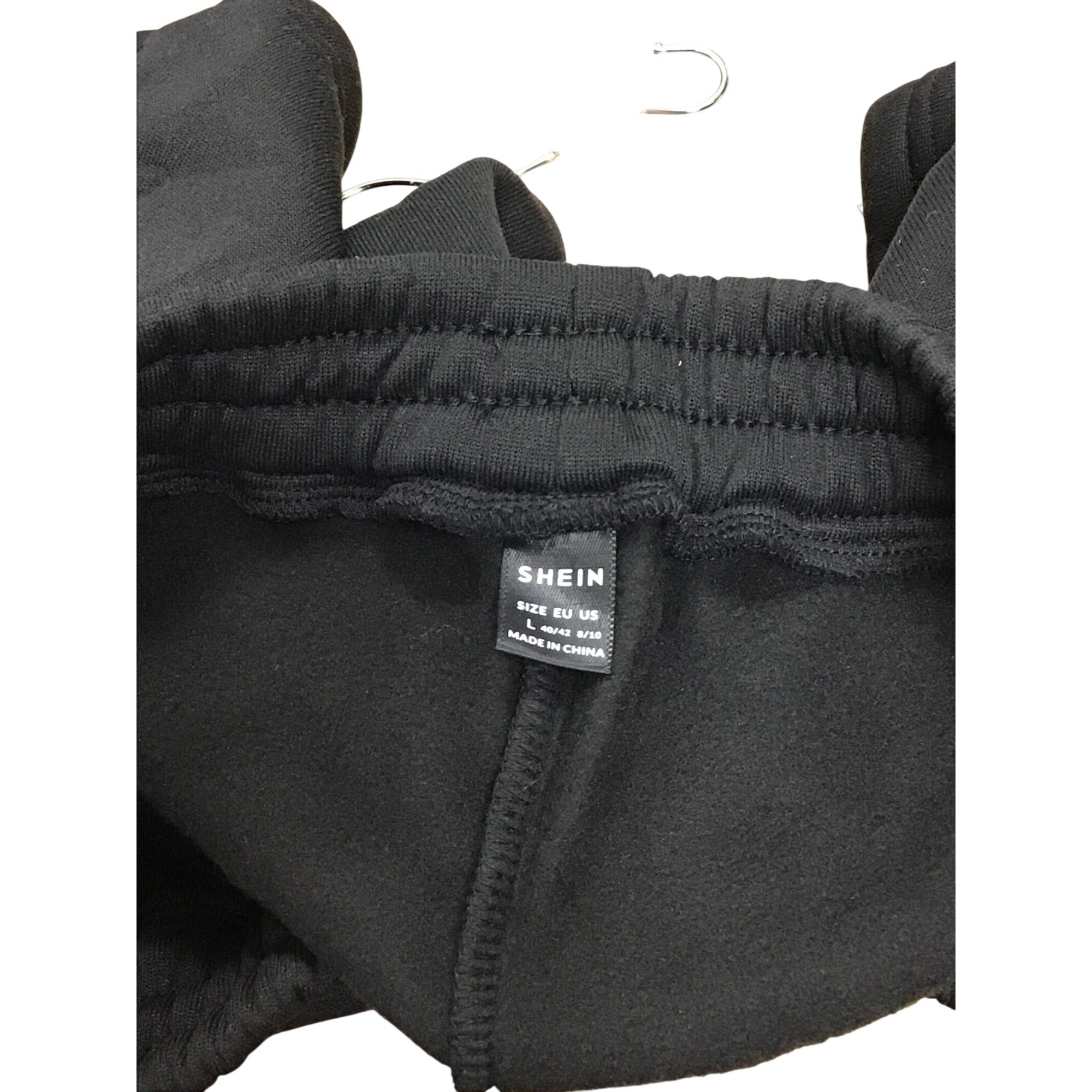 Shein Womens Black Polyester Fleece Shorts Size L Casual Wear Elastic Waist