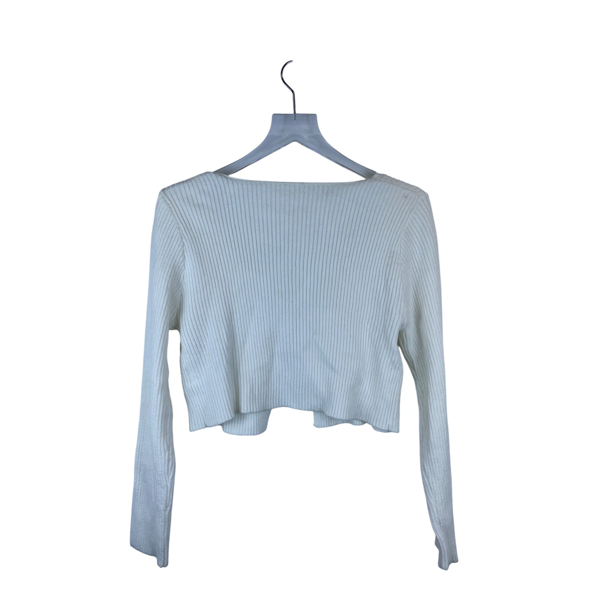 Shein Womens White Ribbed Knit Tie-Front Long-Sleeve Cropped Cardigan Size L