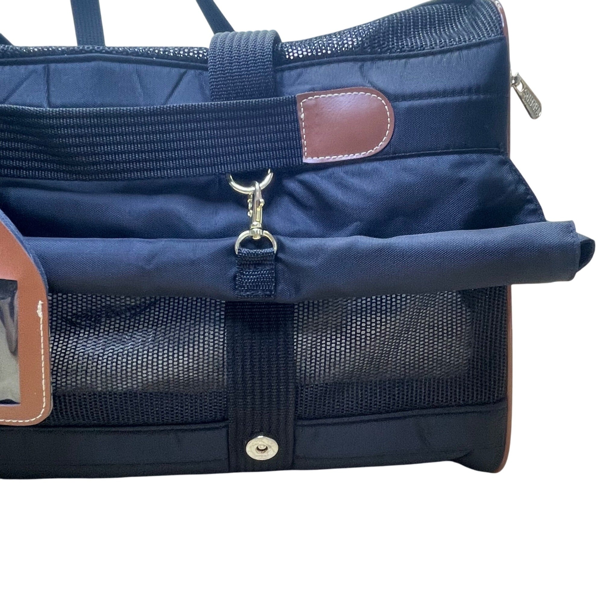 Sherpa’s Black Quilted Nylon Mesh & Leather Accents Pet Carrier Duffel Bag