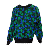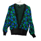 Silk Womens Green & Blue Leaf Print Cardigan Long Sleeve With Ribbed Hem Size 4