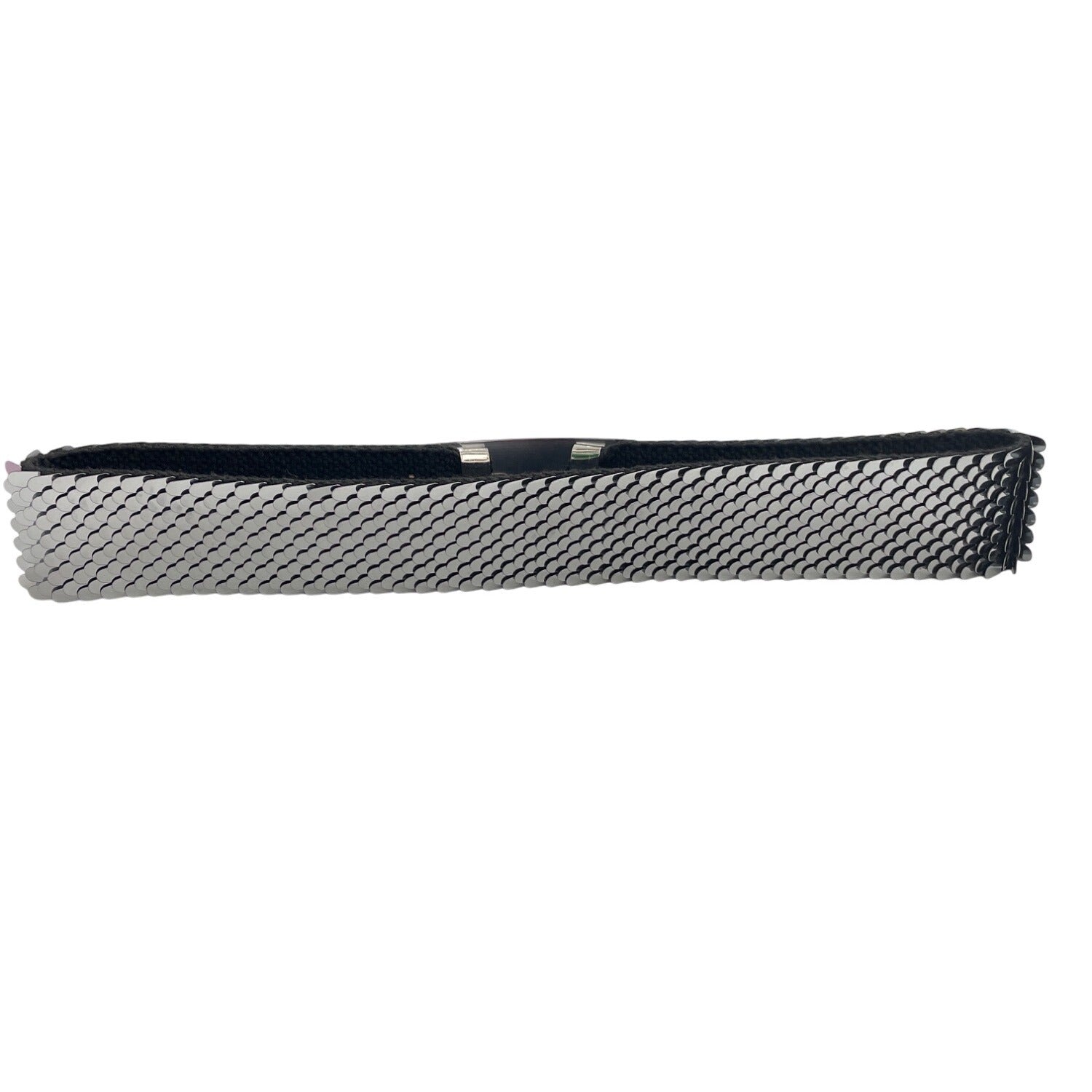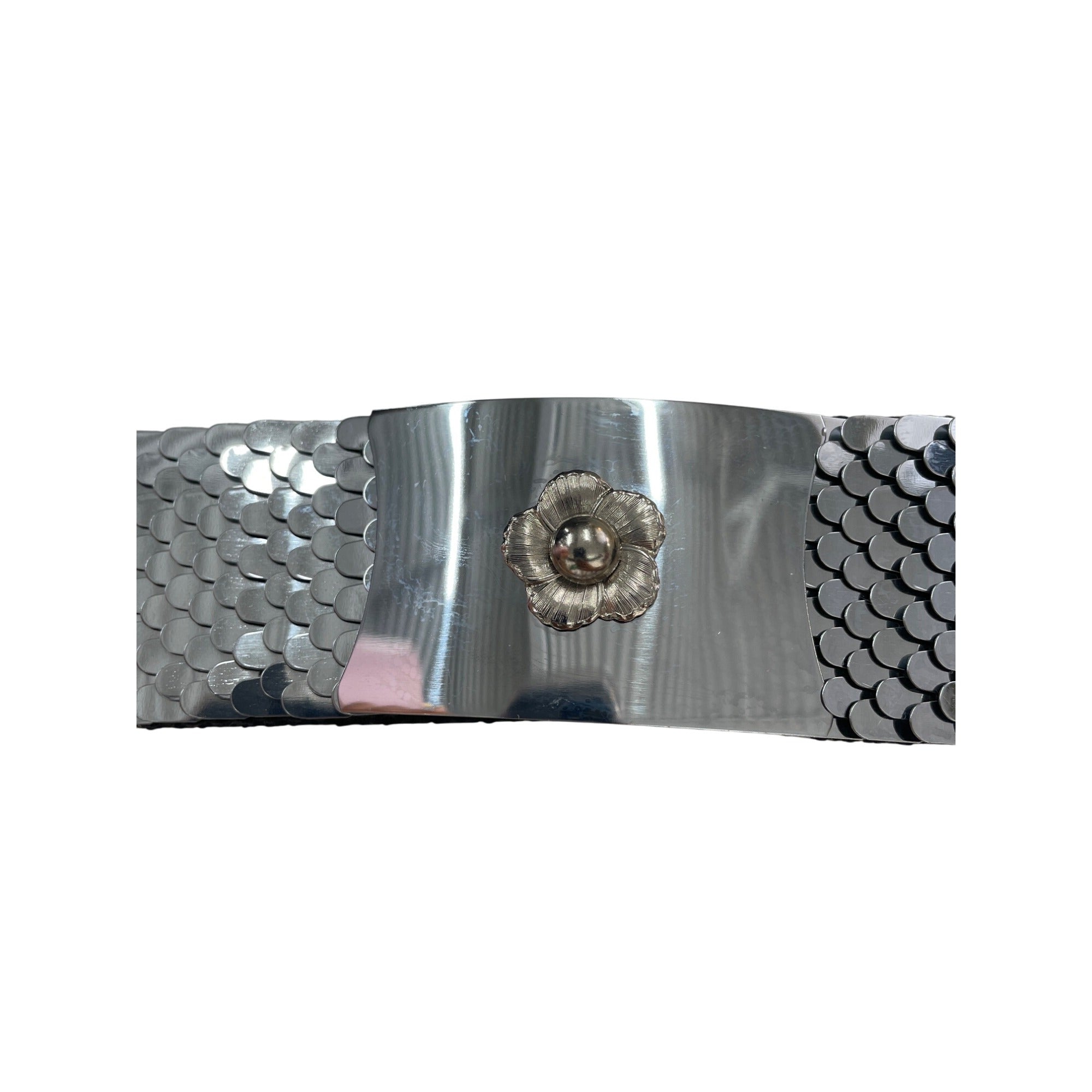 Silver Metal Flower Clasp Stretch Belt Black & Silver Stylish Design Adjustable Fit