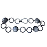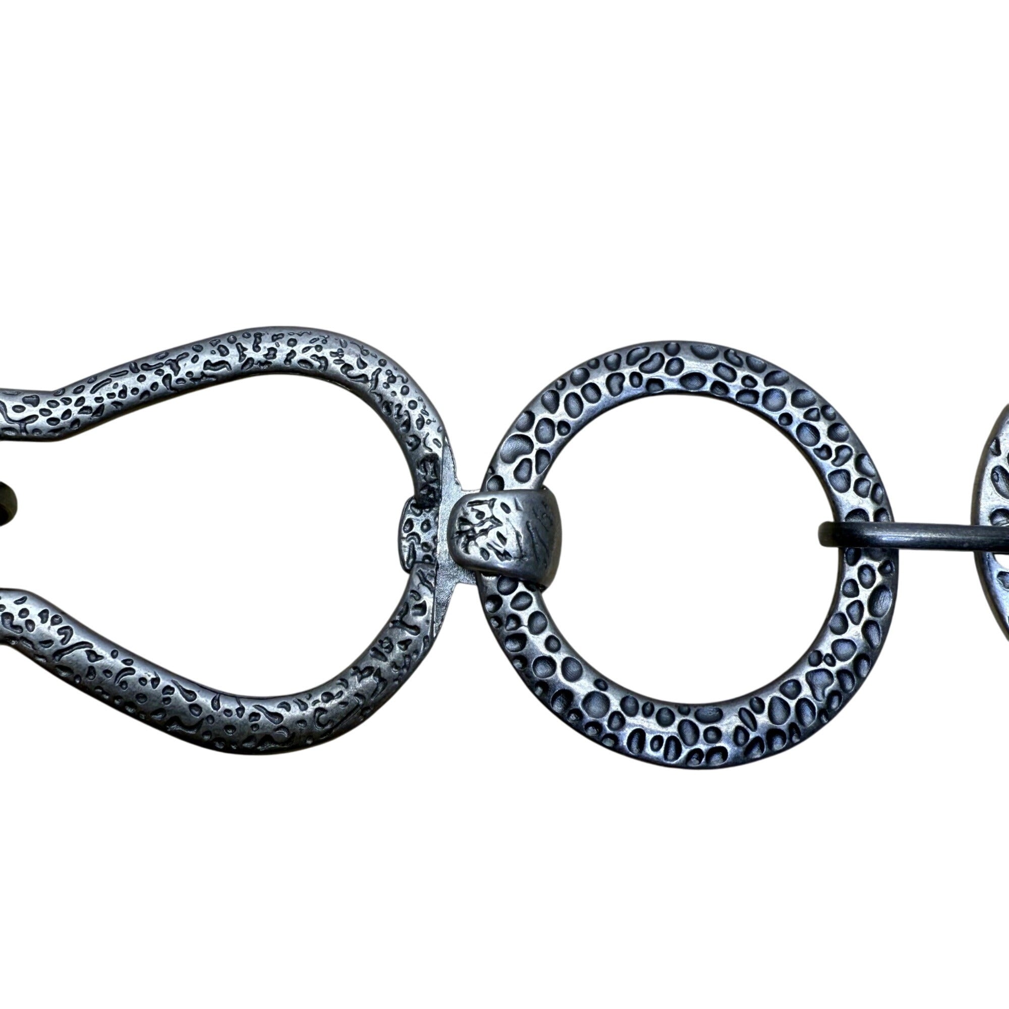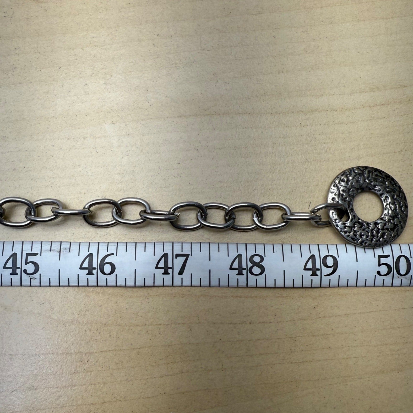 Silver Tone Textured Metal Women’s Chain Necklace Oval & Circle Link Design
