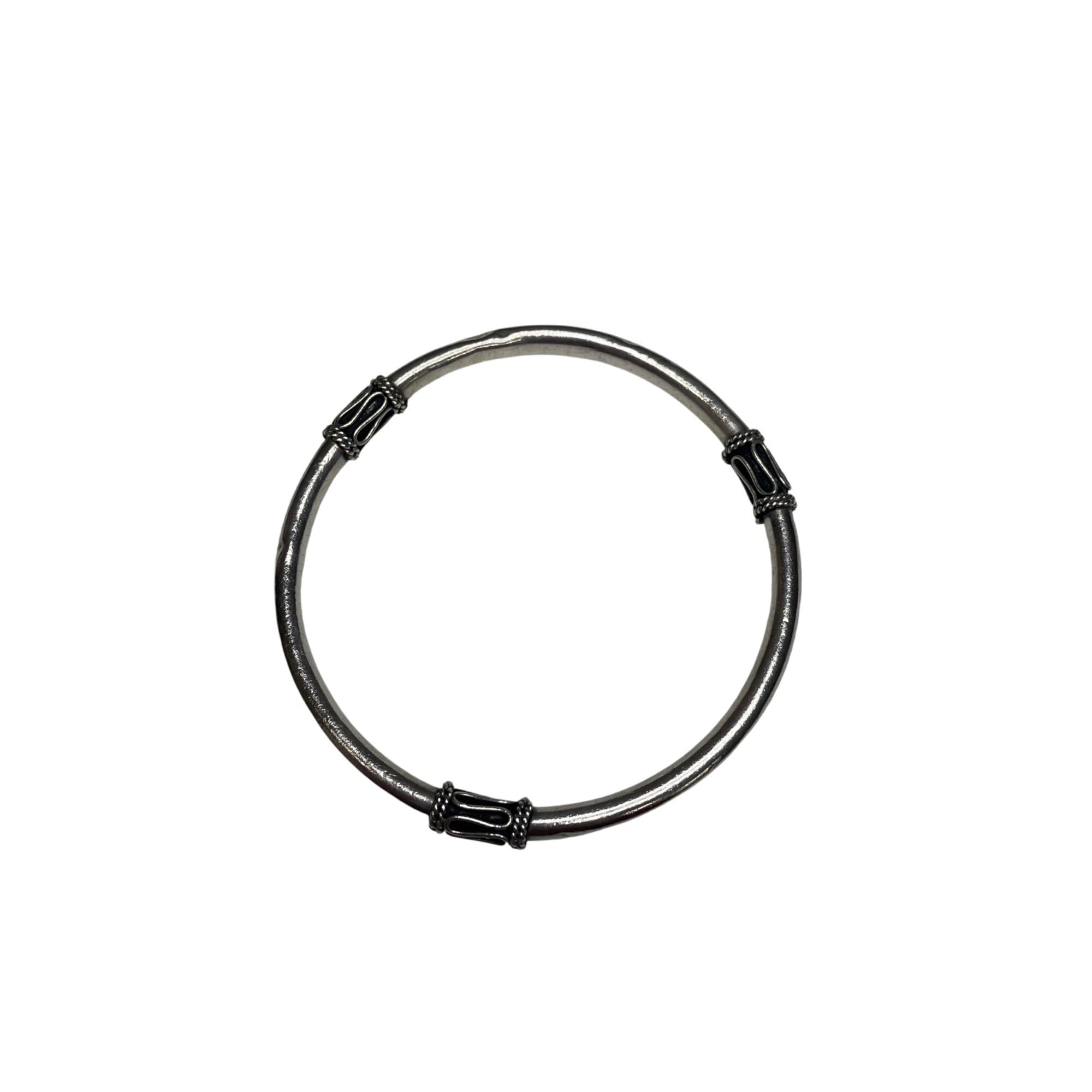 Silver Womans Antiqued Bangle Bracelet With Tribal-Inspired Design Details And Smooth Finish