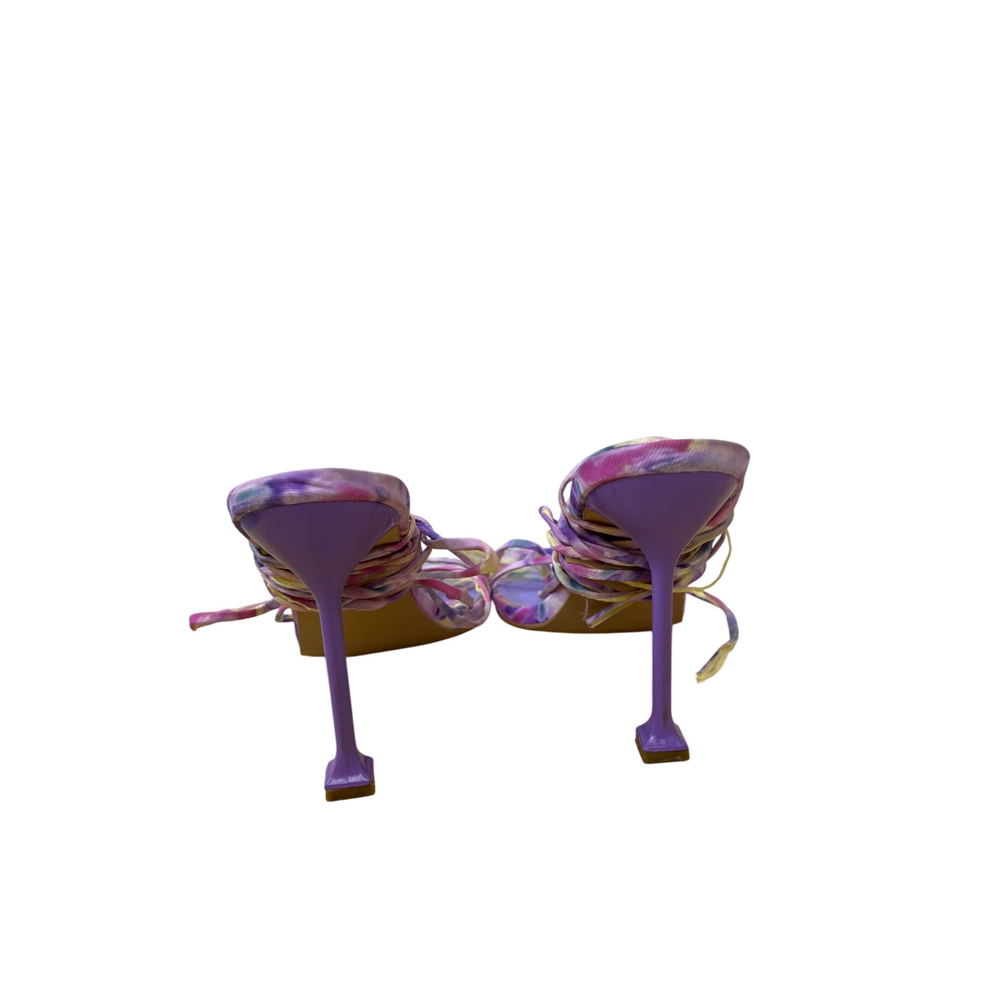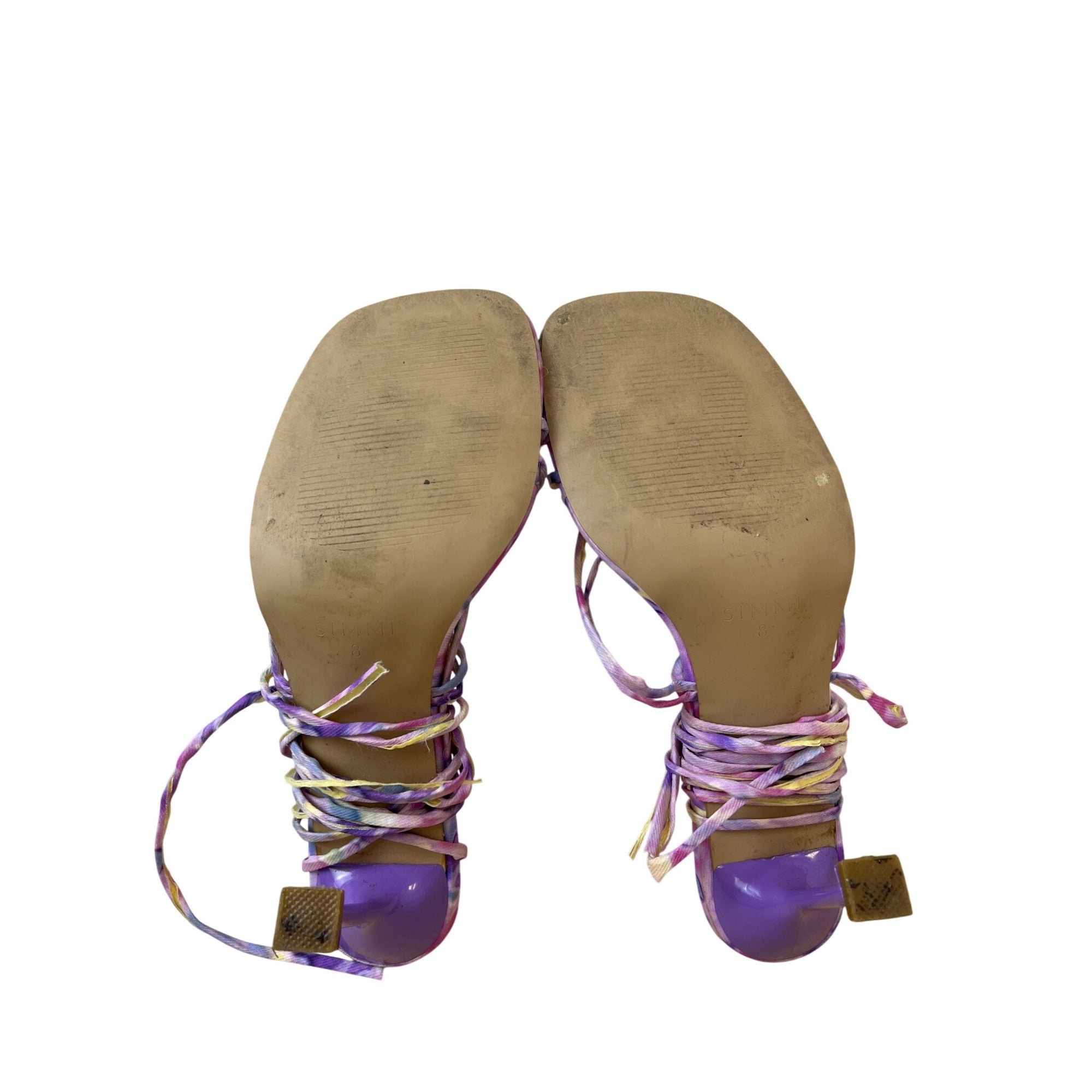 Simmi Womens Multicolor Lace-Up Watercolor Print Open-Toe Stiletto Heels Size 8
