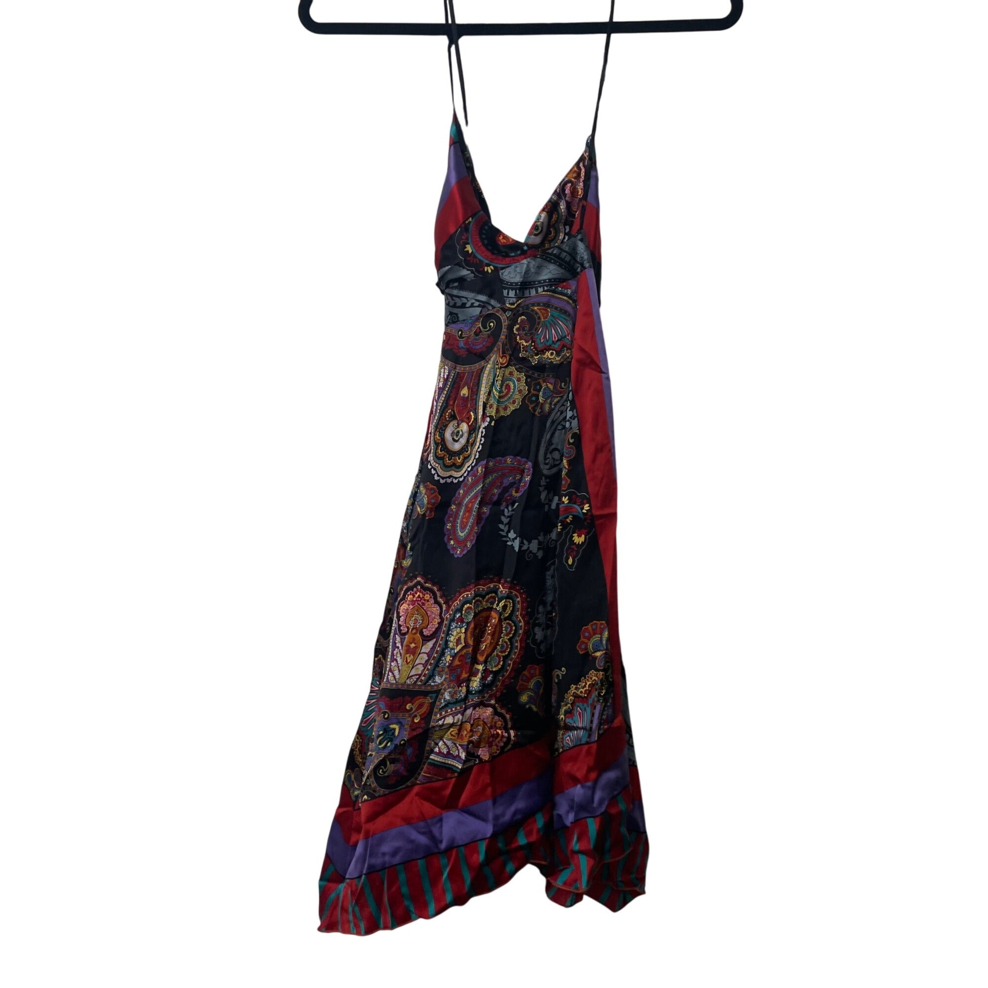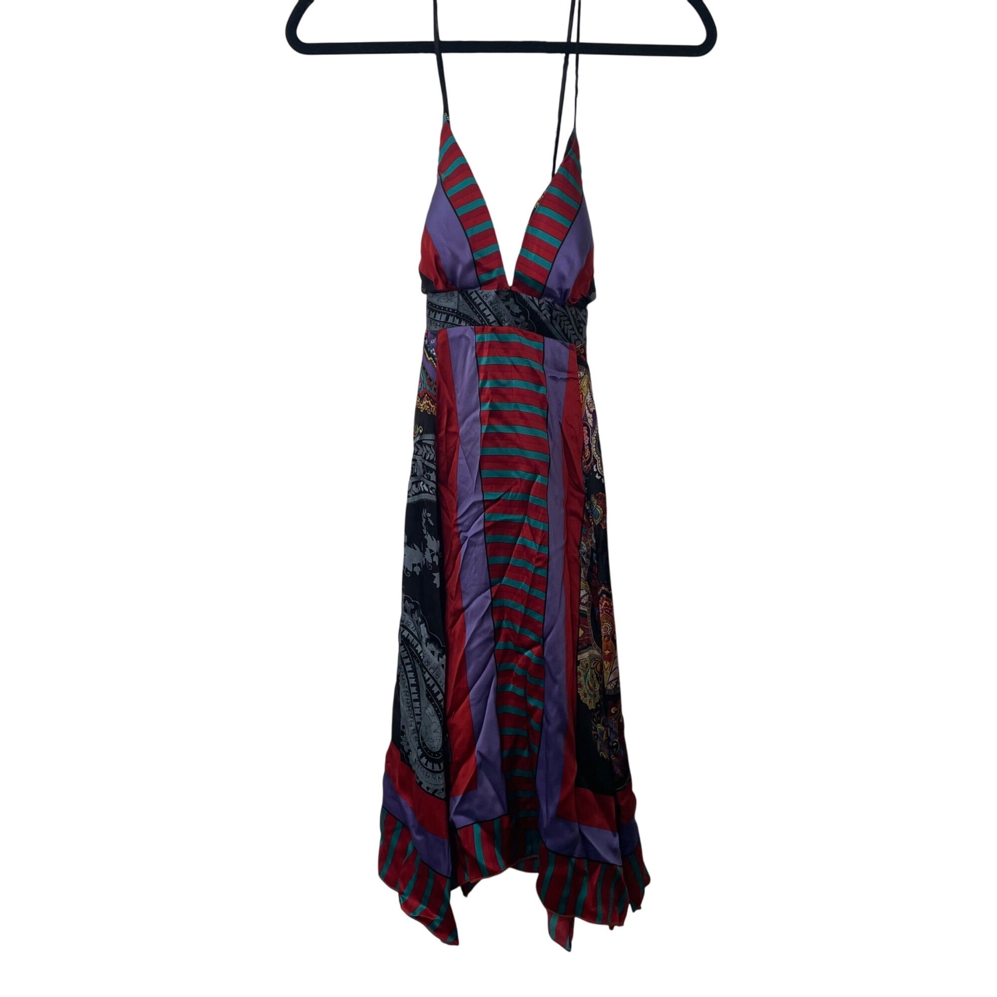 Single Dress Womens Multicolor Silk Paisley Pattern Striped Handkerchief Hem Dress P