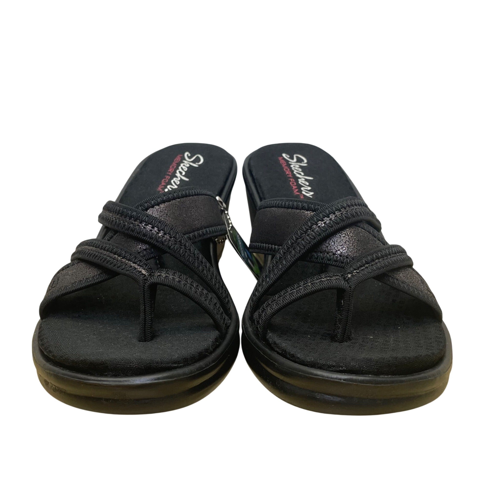 Skechers Women’s Black Memory Foam Rumblers-Happy Dayz Wedge Sandals Size 8