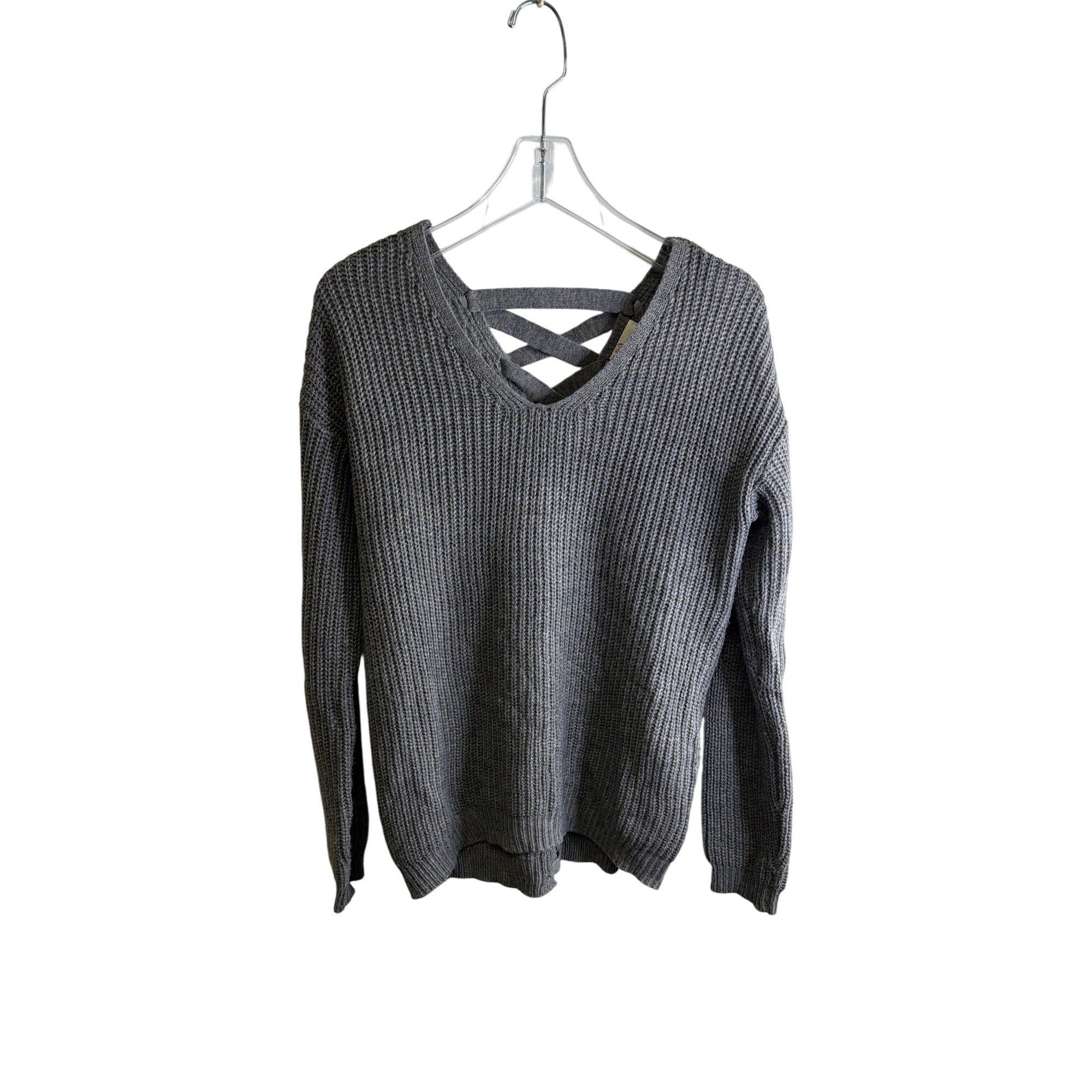 So Womens Gray Knit Sweater Crisscross Back Detail Long Sleeve Ribbed Medium