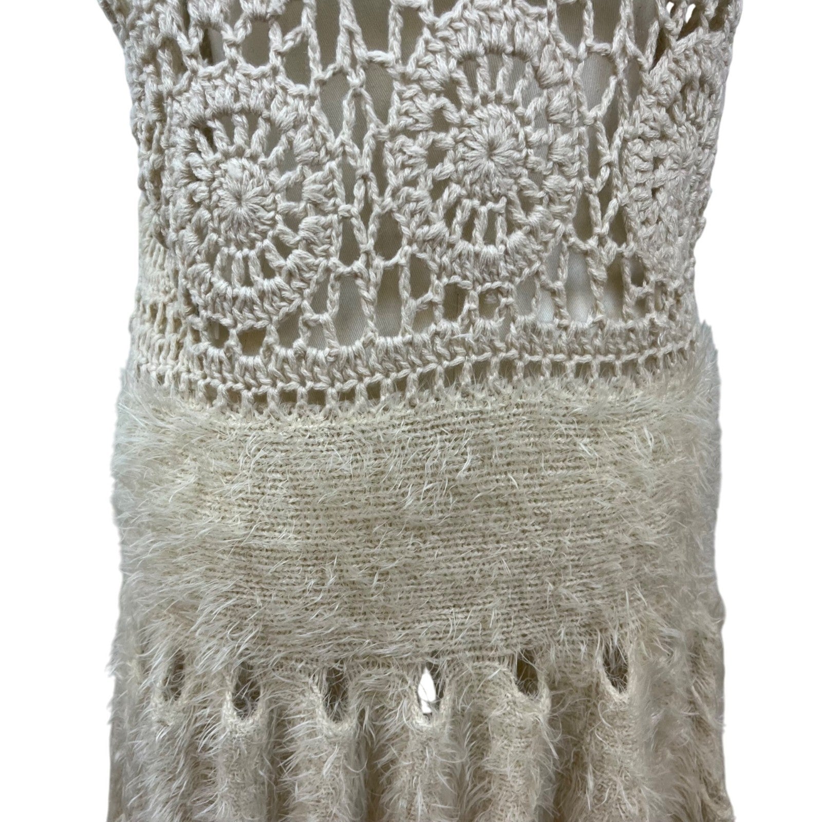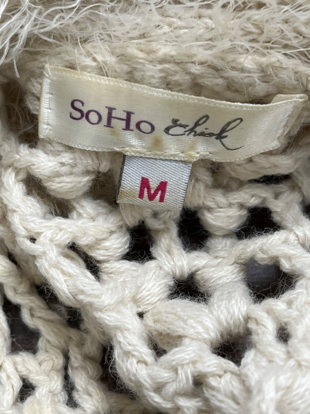 Soho Chick Womens Beige Crochet Knit Shawl Collar Vest Medium Acrylic Open Front