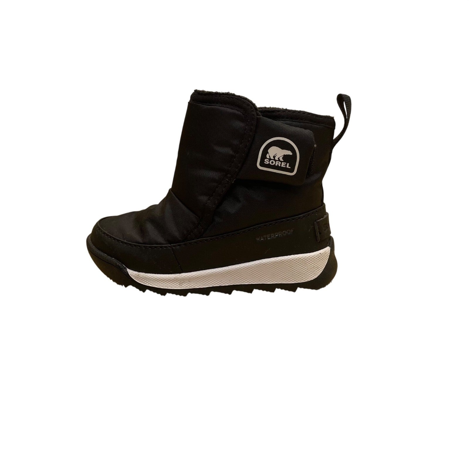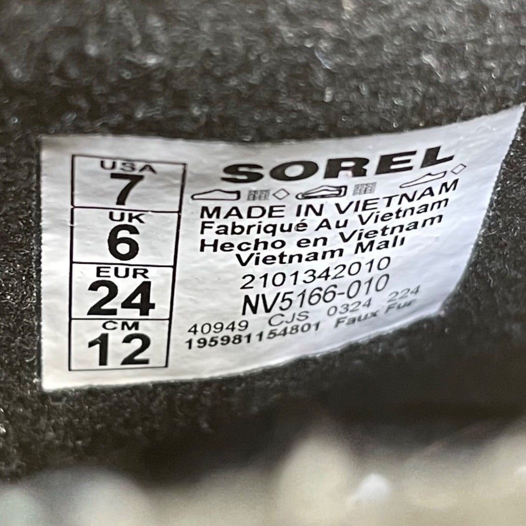 Sorel Boys Black Faux Fur Insulated Waterproof Slip-On Winter Boots Size 7