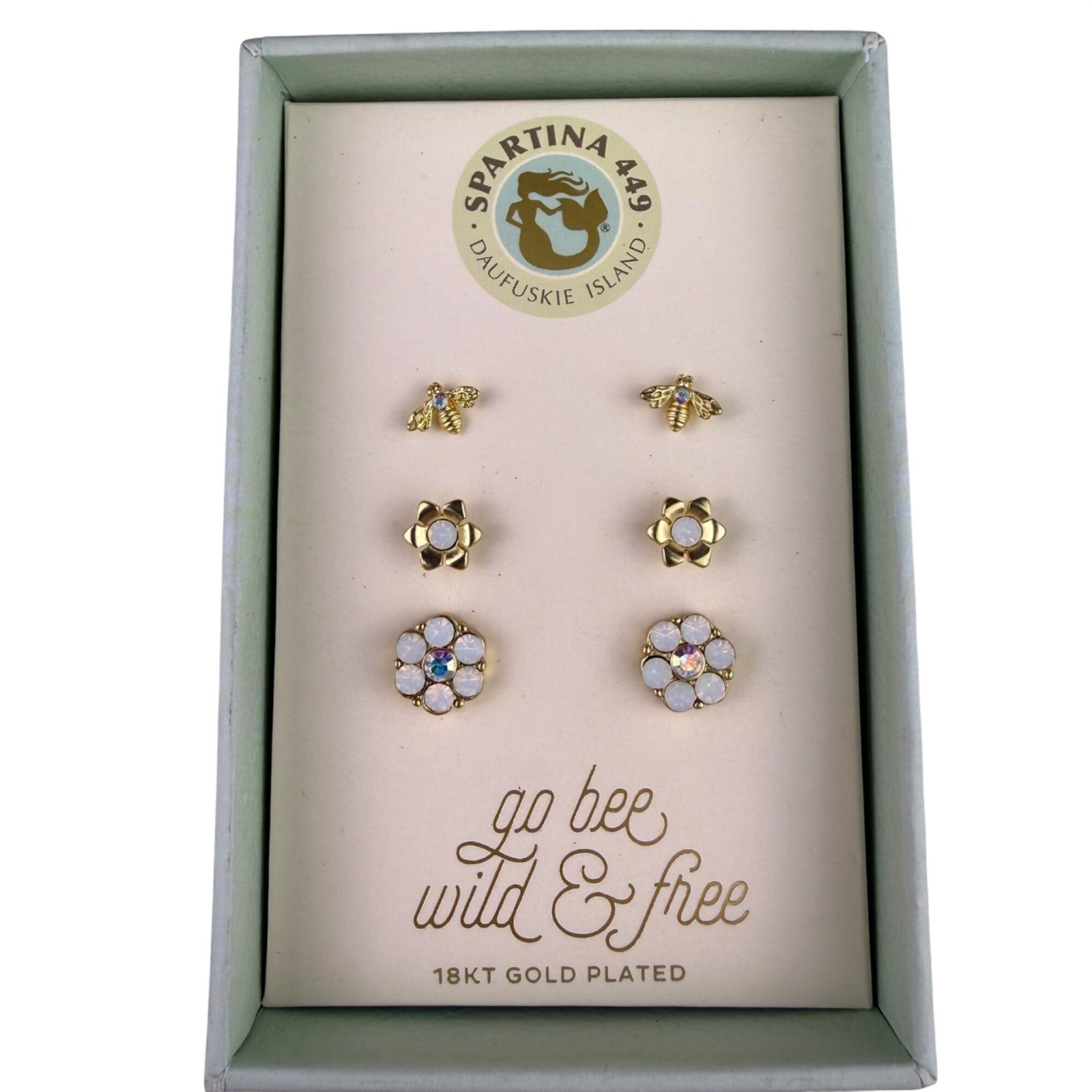 Spartina 449 Womens Gold Tone Stud Earring Set With Bee & Floral Designs