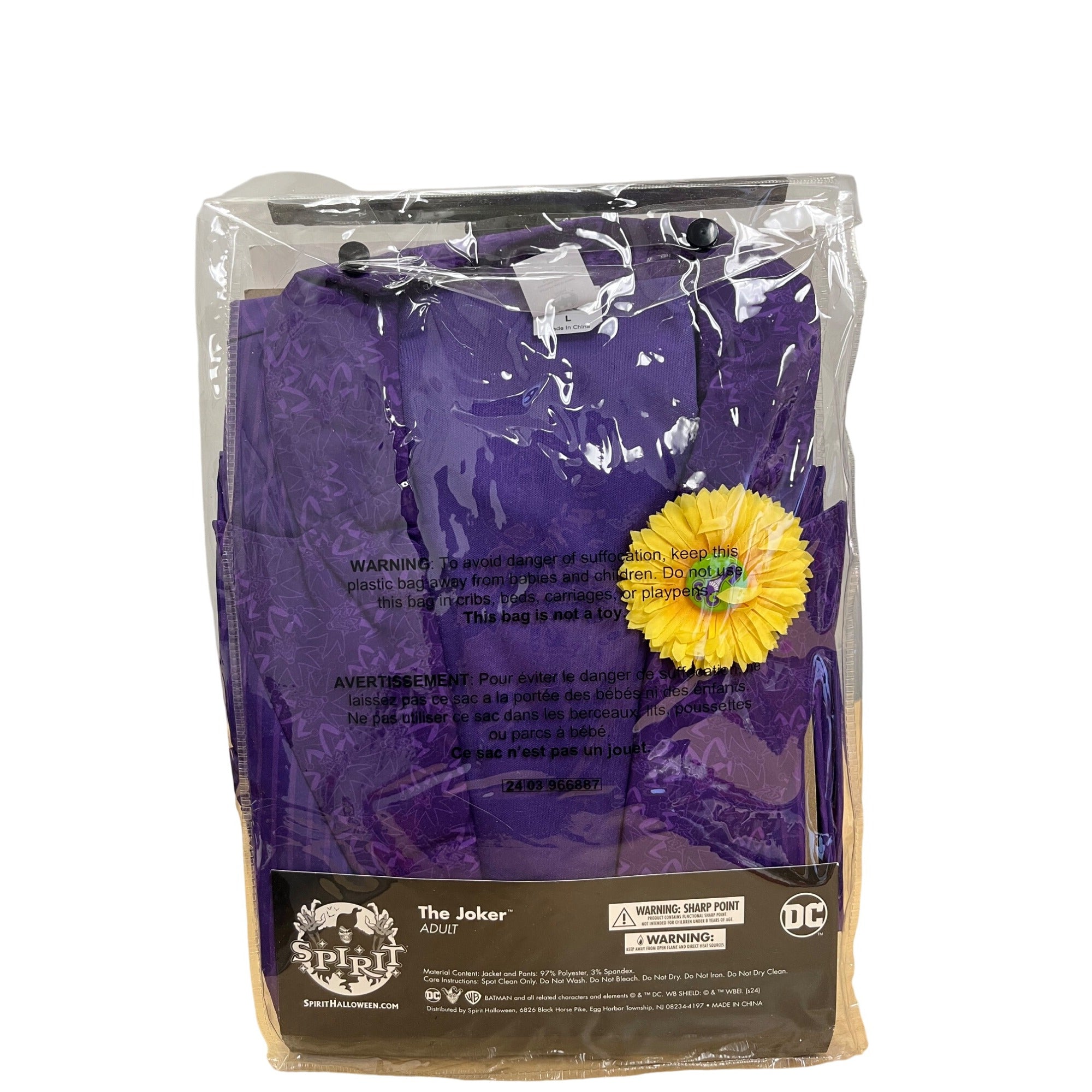 Spirit Halloween Adult Purple The Joker Costume Jacket Pants Pin Size Large 12-14