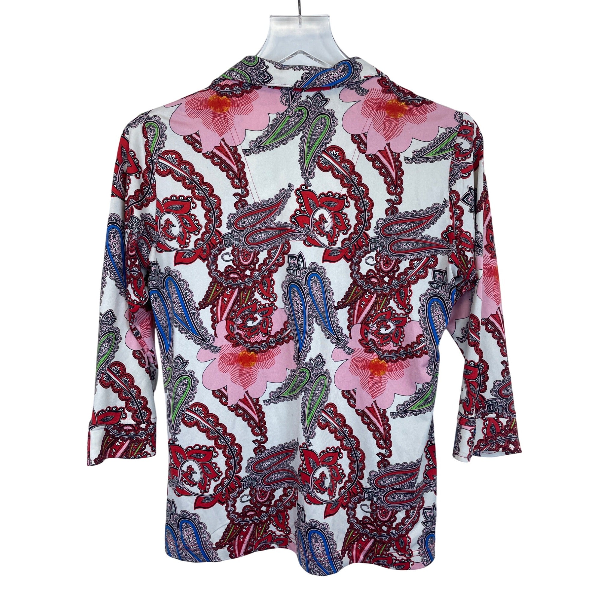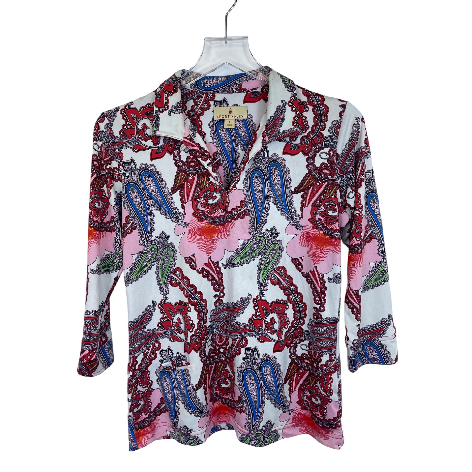 Sport Haley Womens Multi-Color Patterned 3/4 Sleeve Polo Shirt Size S