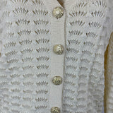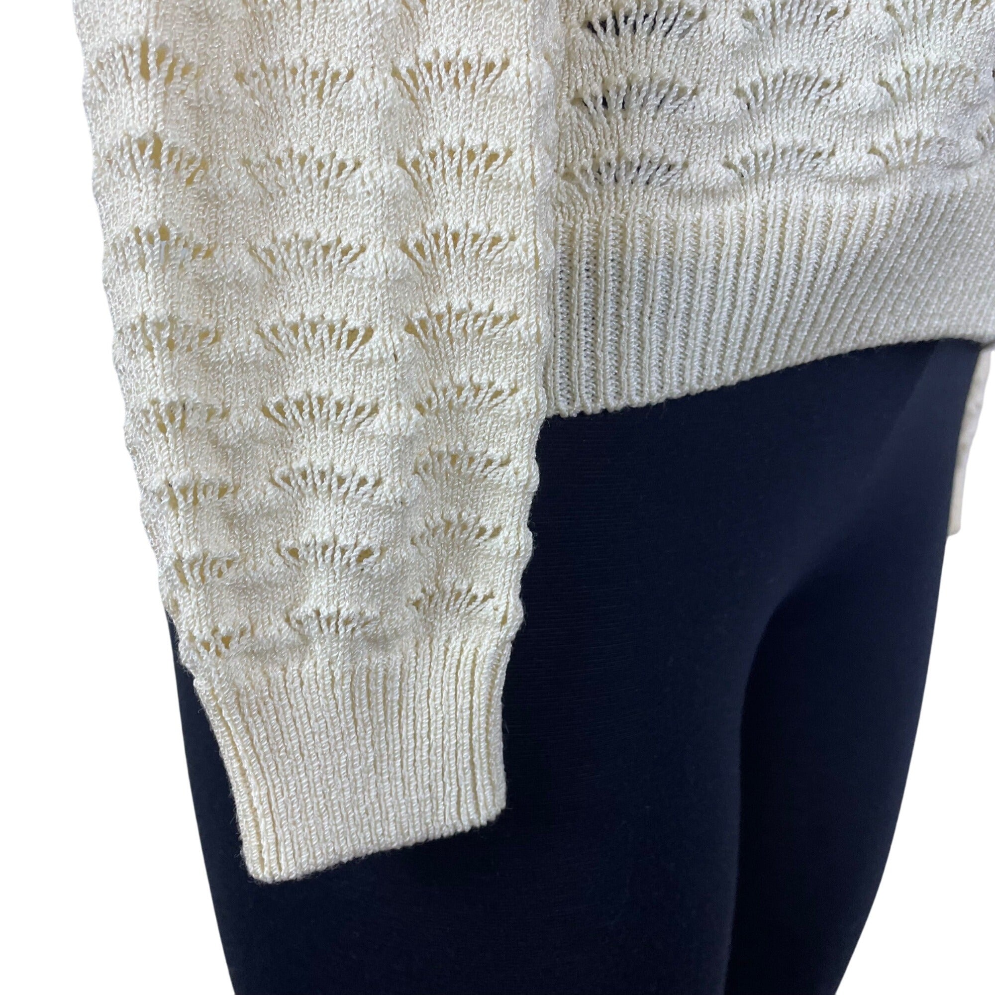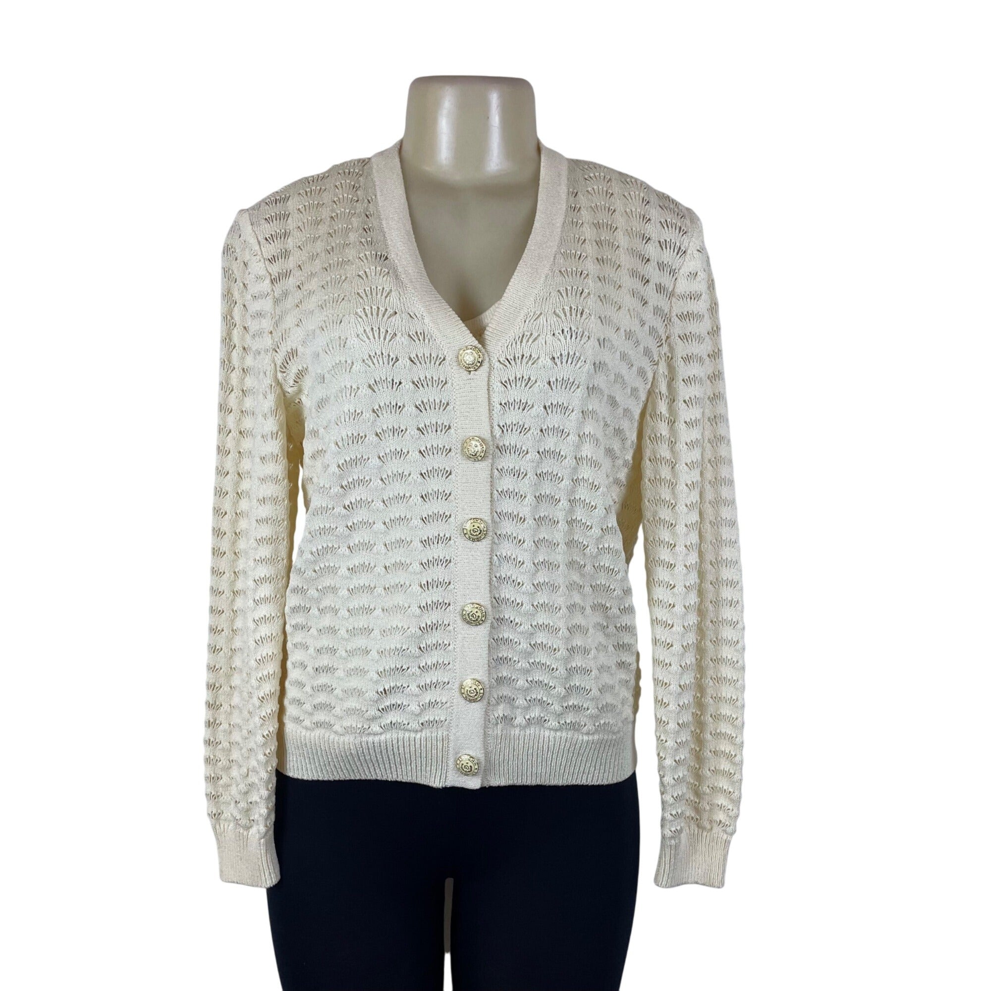 St. John Cream Women's Knit Open-Stitch Tank Top & Cardigan Set 2-Piece Sz S